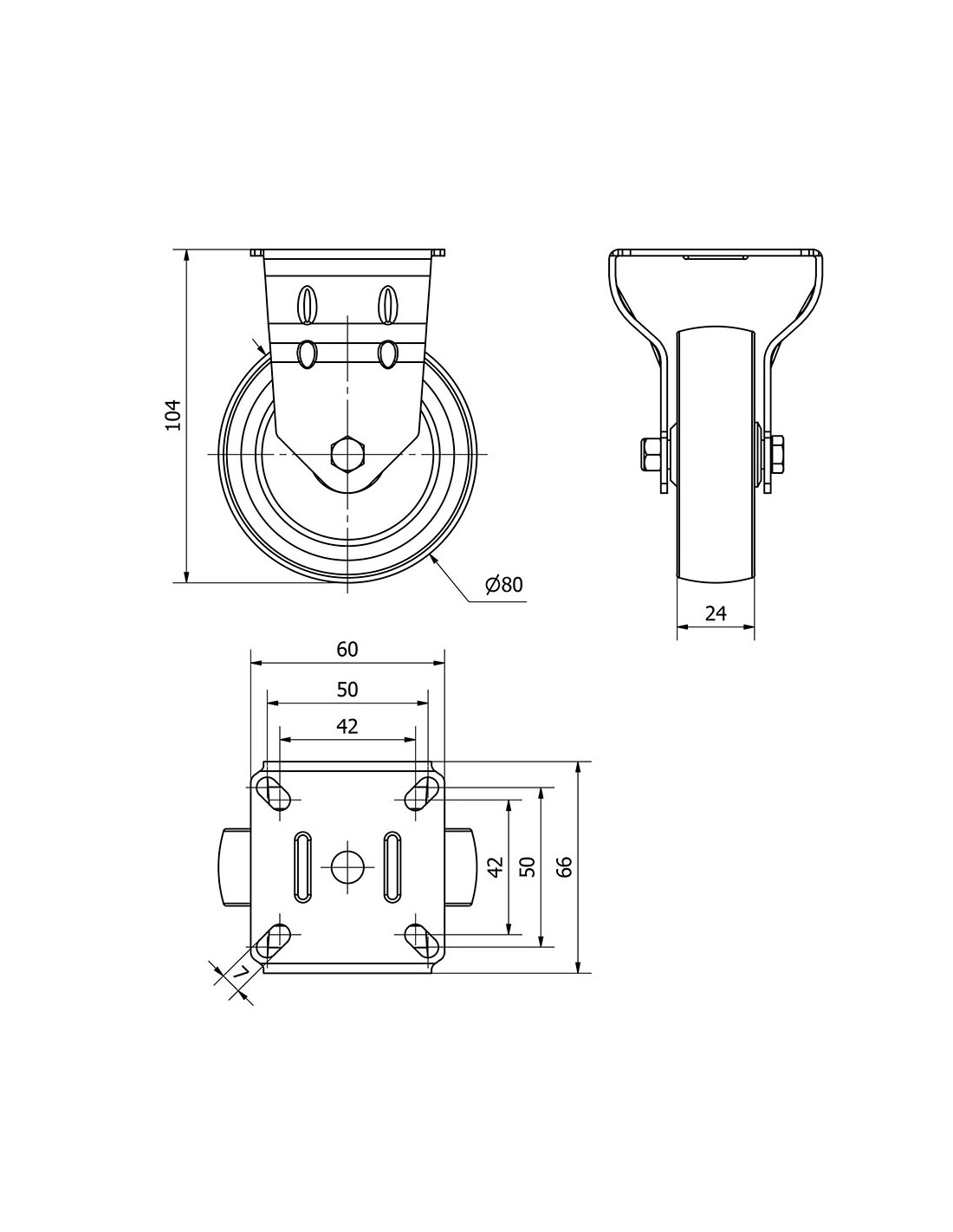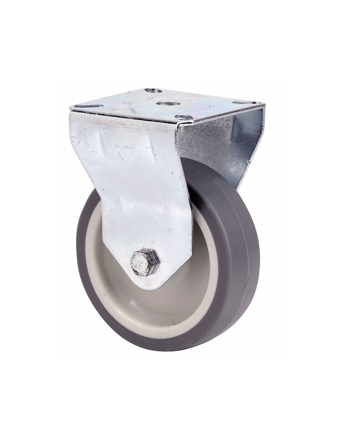 Rueda fija de goma con placa y eje liso, color gris, material: poliamix - goma, carga máx. 60 kg, ø 8 cm