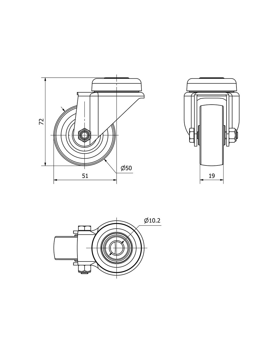 Rueda giratoria, agujero y eje liso, carga máx. 40 kg, material: poliamix - goma, color gris, ø 5 cm