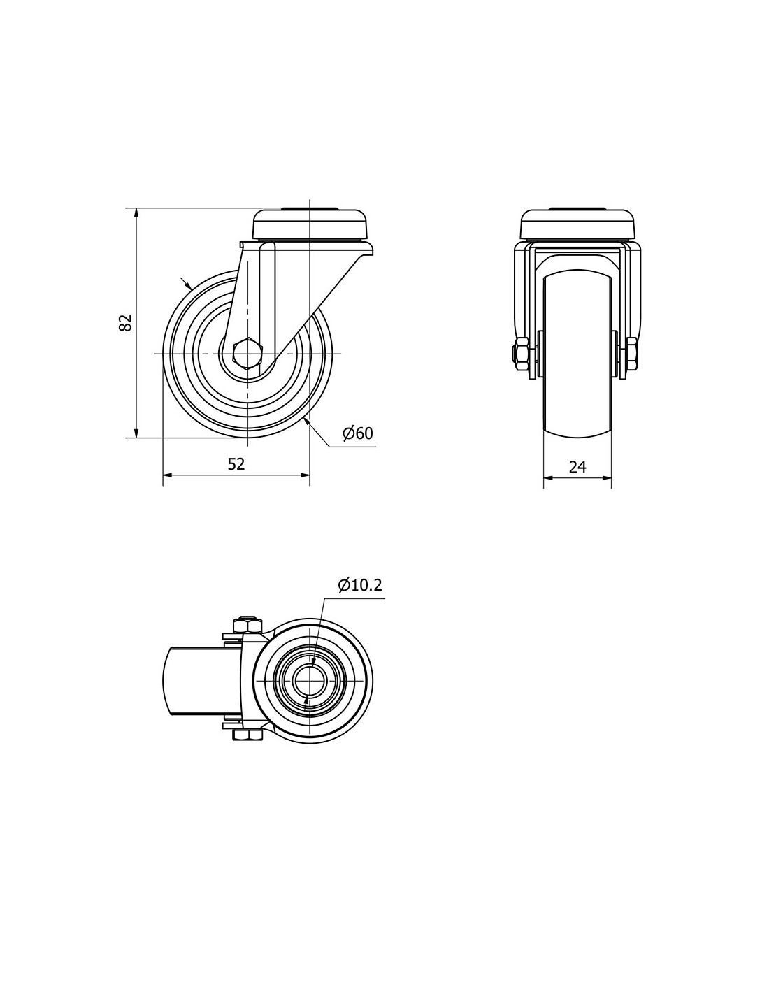 Rueda giratoria, agujero y eje liso, carga máx. 50 kg, material: poliamix - goma, color gris, ø 6 cm