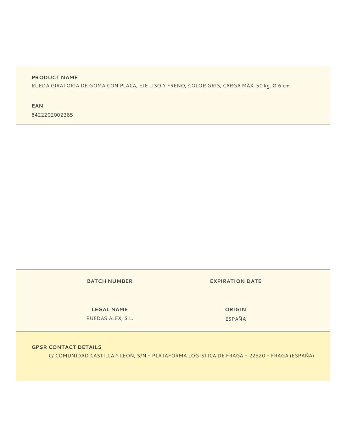 Rueda fija de goma con placa y eje liso, color gris, carga máx. 50 kg, ø 6 cm