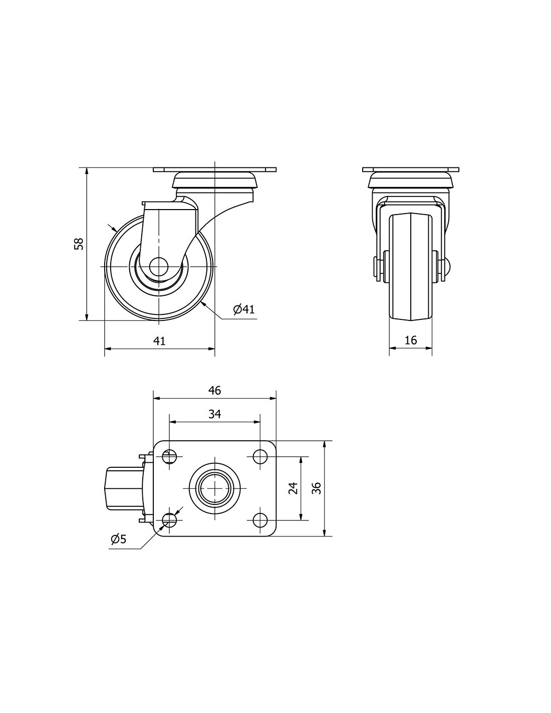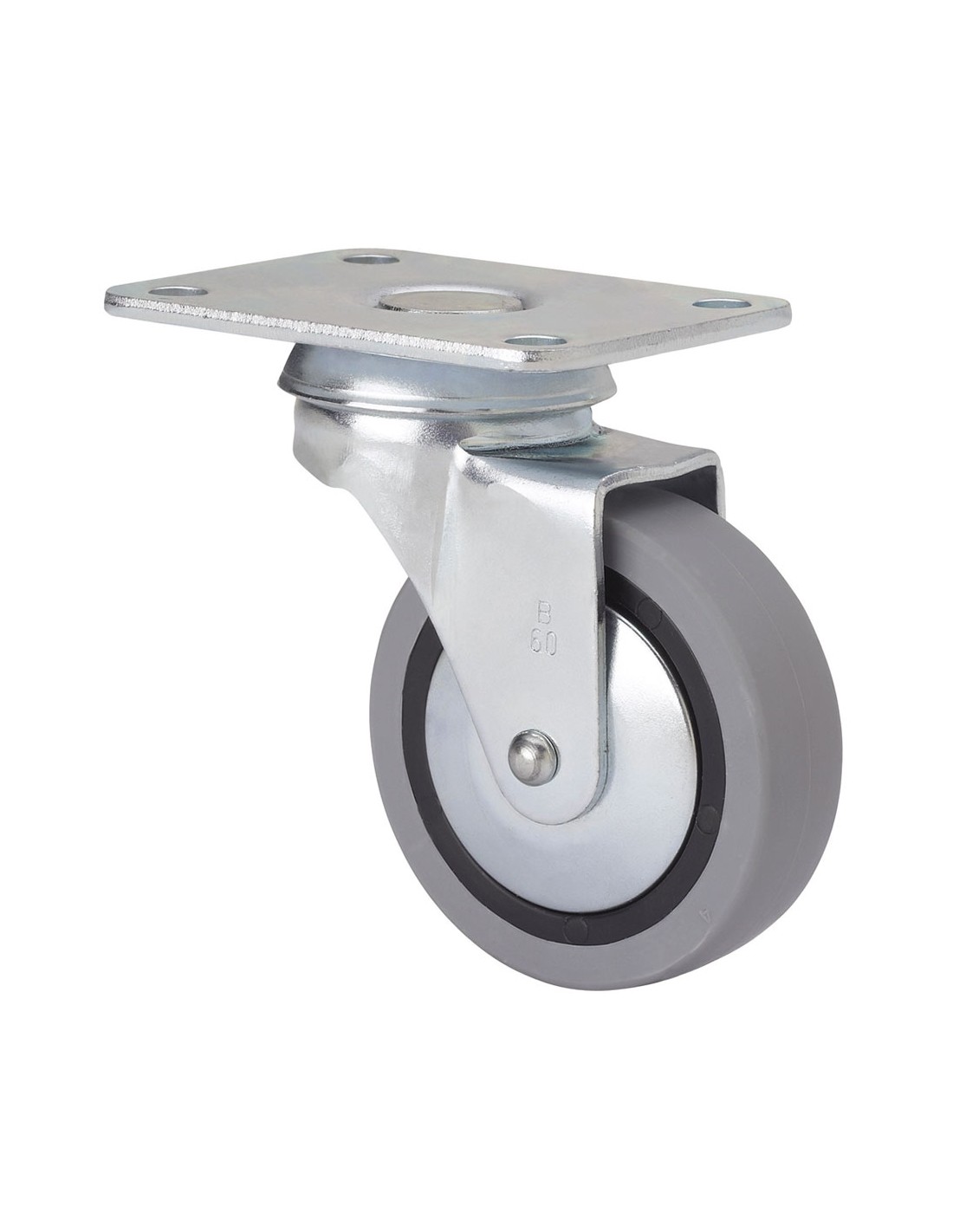 Rueda giratoria con placa y eje liso, color gris, material: poliamix - goma, carga máx. 17 kg, ø 4 cm