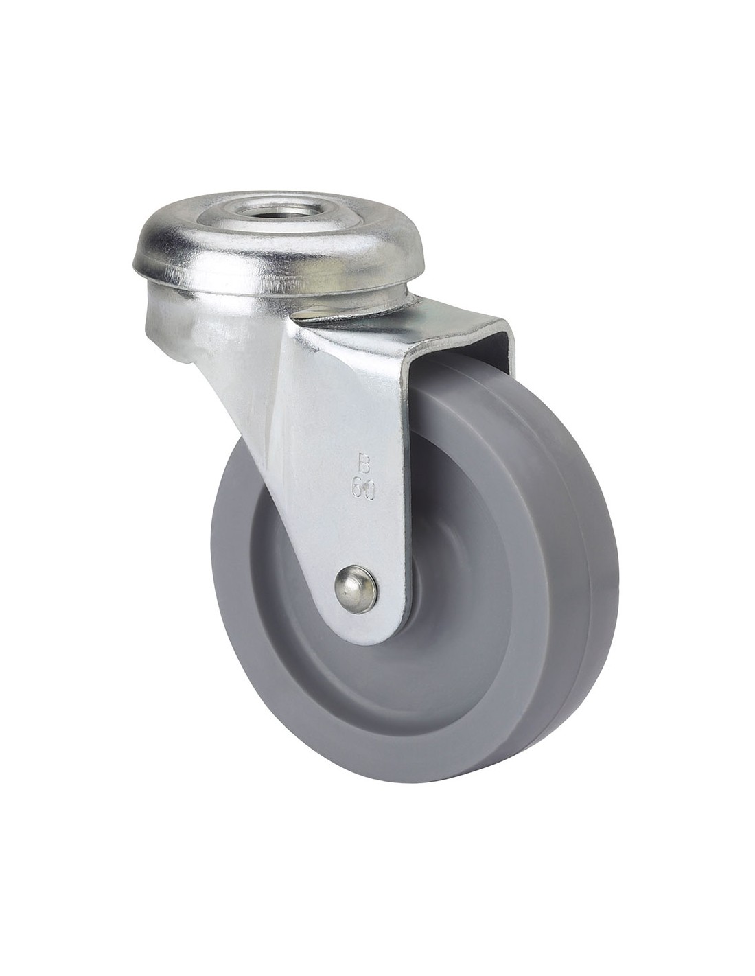 Rueda giratoria con agujero y eje liso, color gris, material: poliamix, carga máx. 22 kg, ø 4 cm