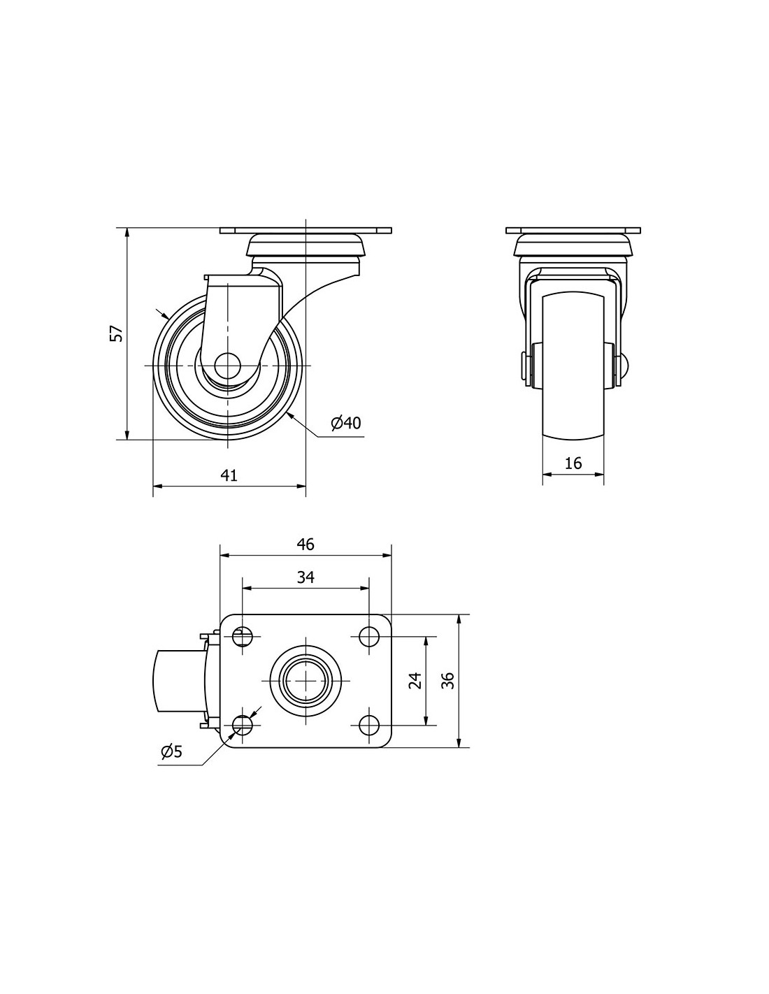 Rueda giratoria con placa y eje liso, color gris, carga máx. 15 kg, ø 3 cm