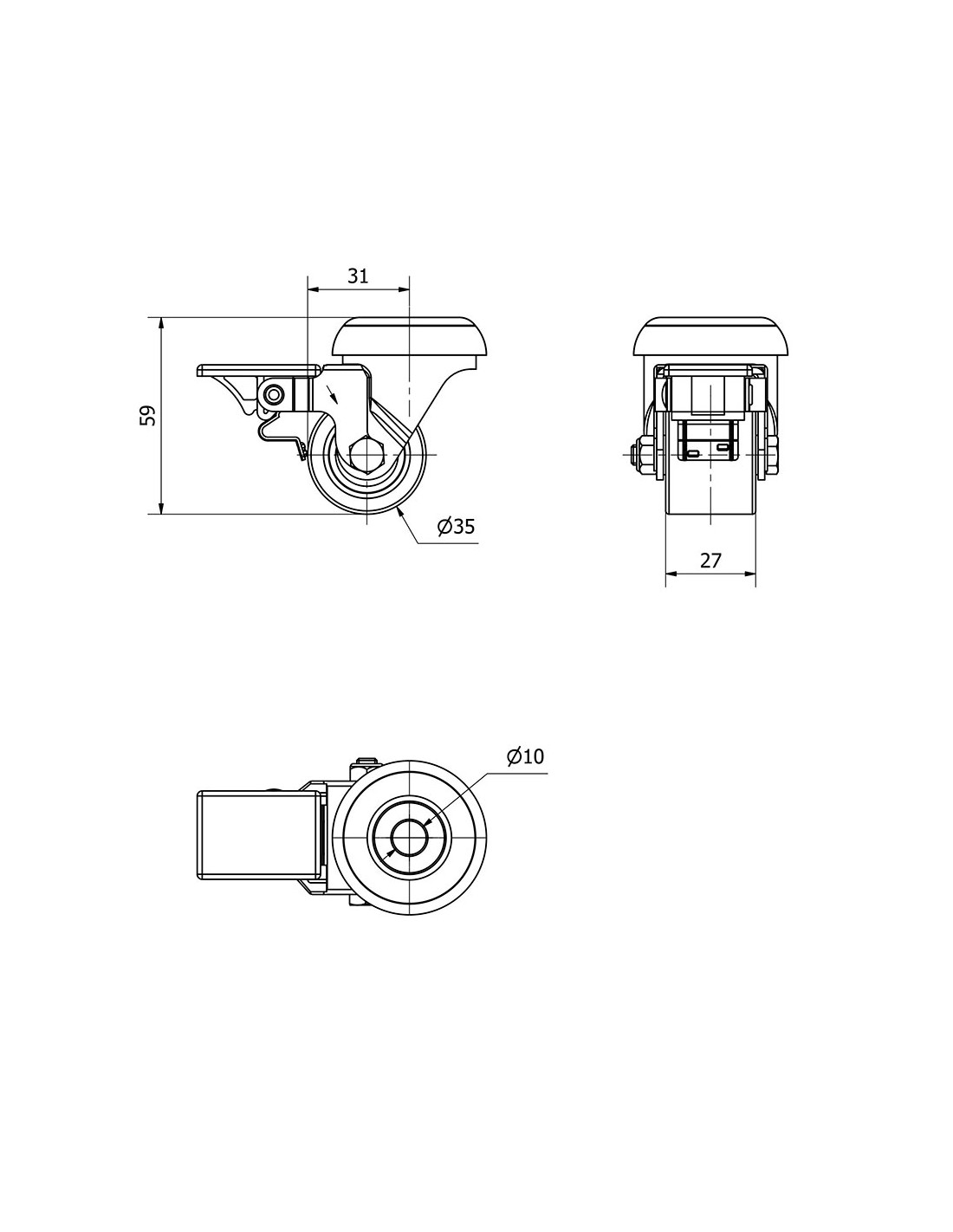 Rueda giratoria espiga roscada y eje liso, color negro, carga máx. 50 kg, 10 x 15 cm, ø...