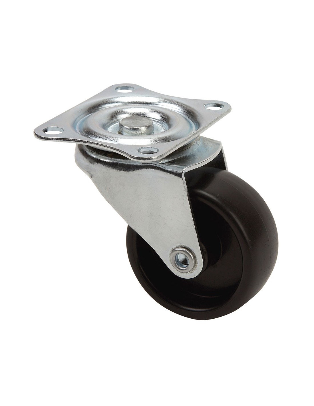 Rueda giratoria con placa y eje liso, color negro, material: polipropileno-plástico, carga máx. 20 kg, ø 4 cm