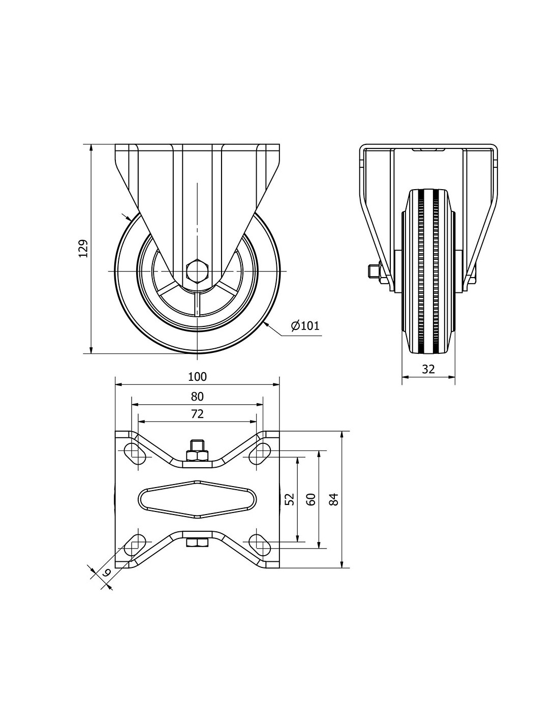 Rueda fija con placa y eje liso, color negro, material: poliamix - goma, carga máx. 80 kg, ø 10 cm