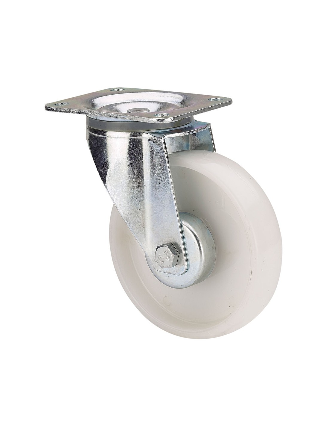 Rueda giratoria con placa y eje liso, color blanco, material: poliamix, carga máx. 170 kg, ø 12,5 cm