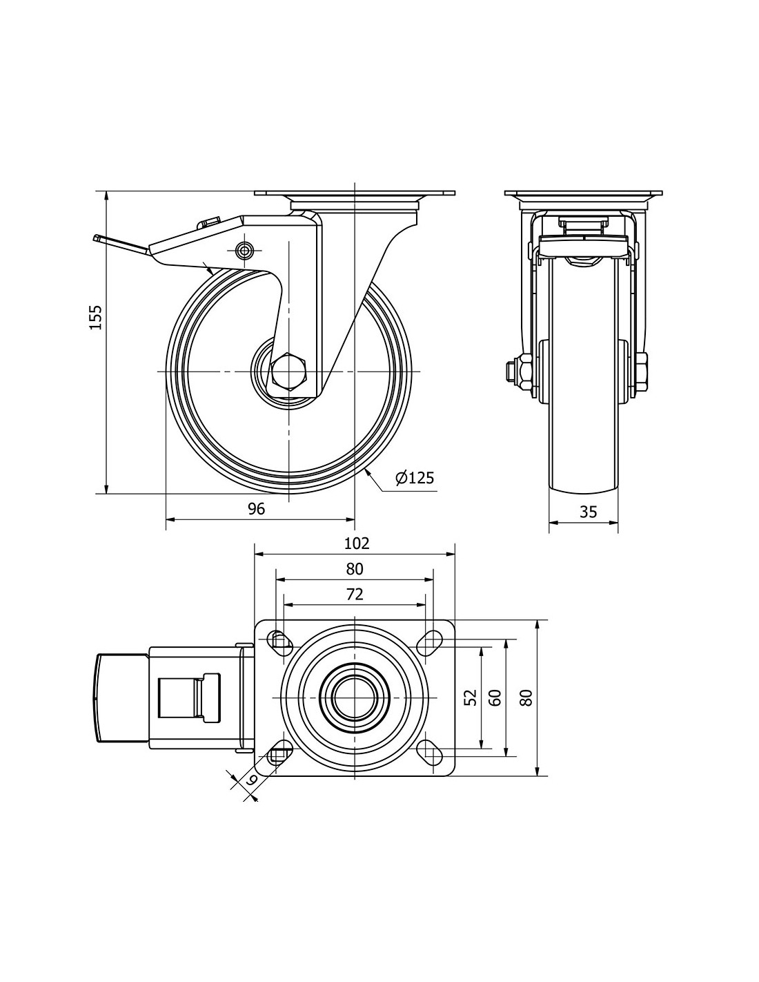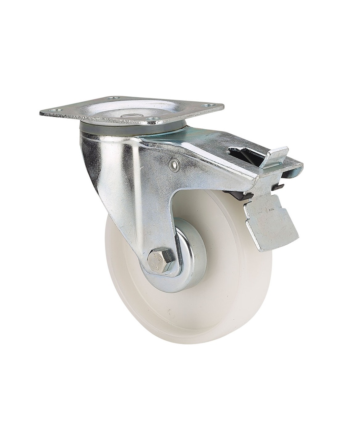 Rueda giratoria con placa, eje liso y freno, color blanco, material: poliamix, carga máx. 170 kg, ø 12,5 cm