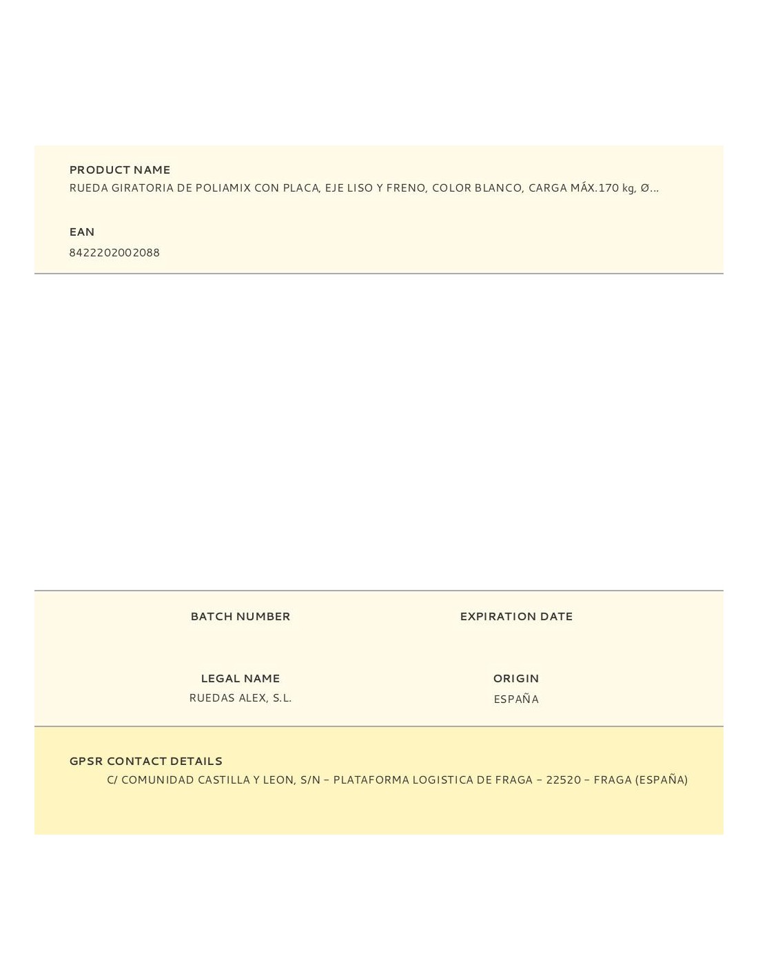 Rueda giratoria de poliamix con placa y eje liso, color blanco, carga máx. 130 kg, ø 8 cm