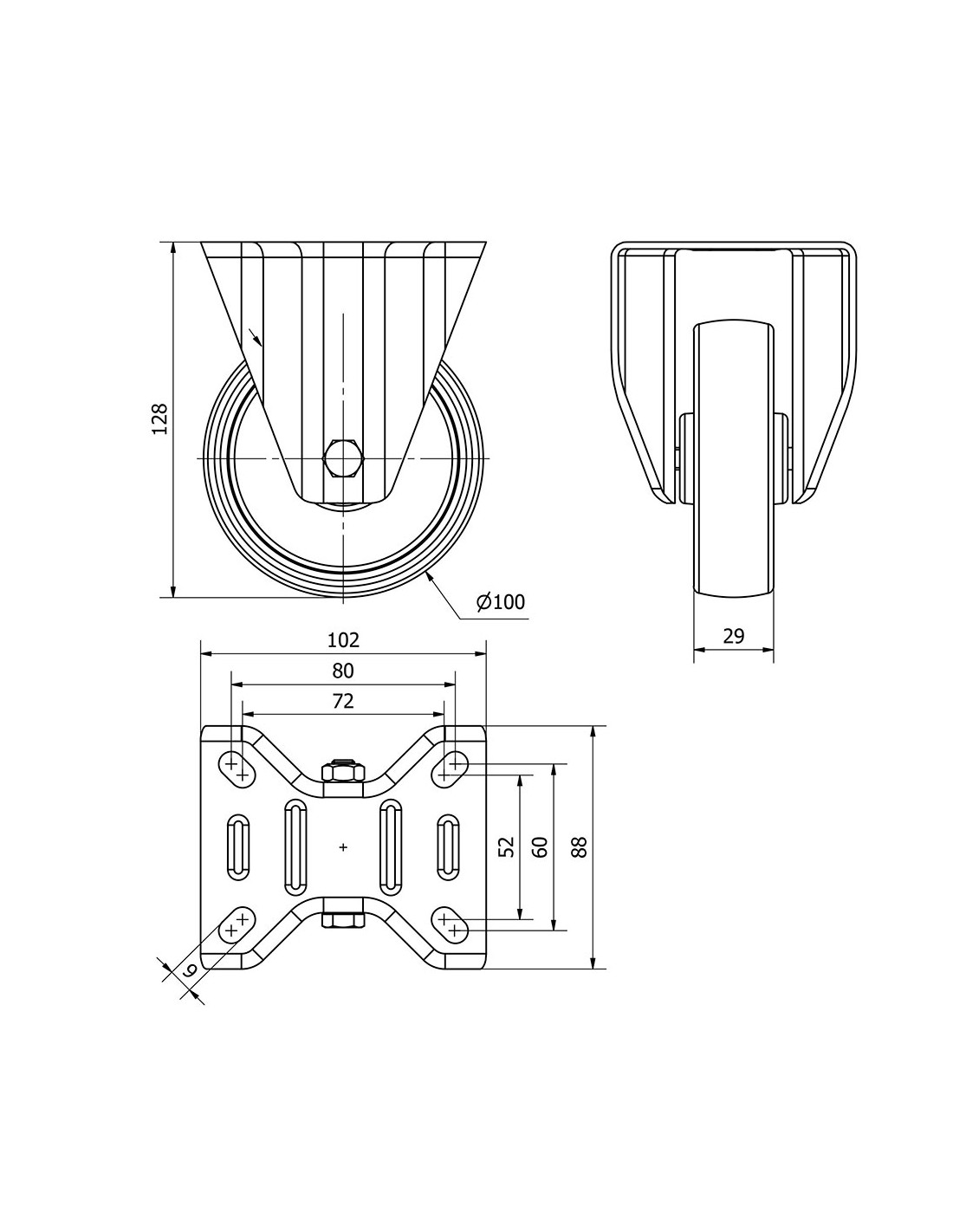Rueda fija con placa y eje liso, color blanco, material: poliamix, carga máx. 150 kg, ø 10 cm