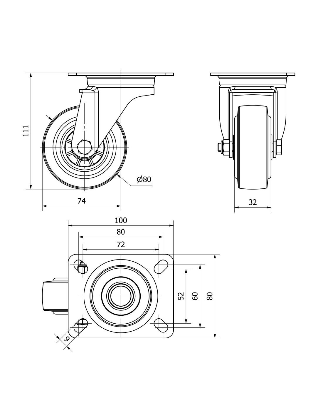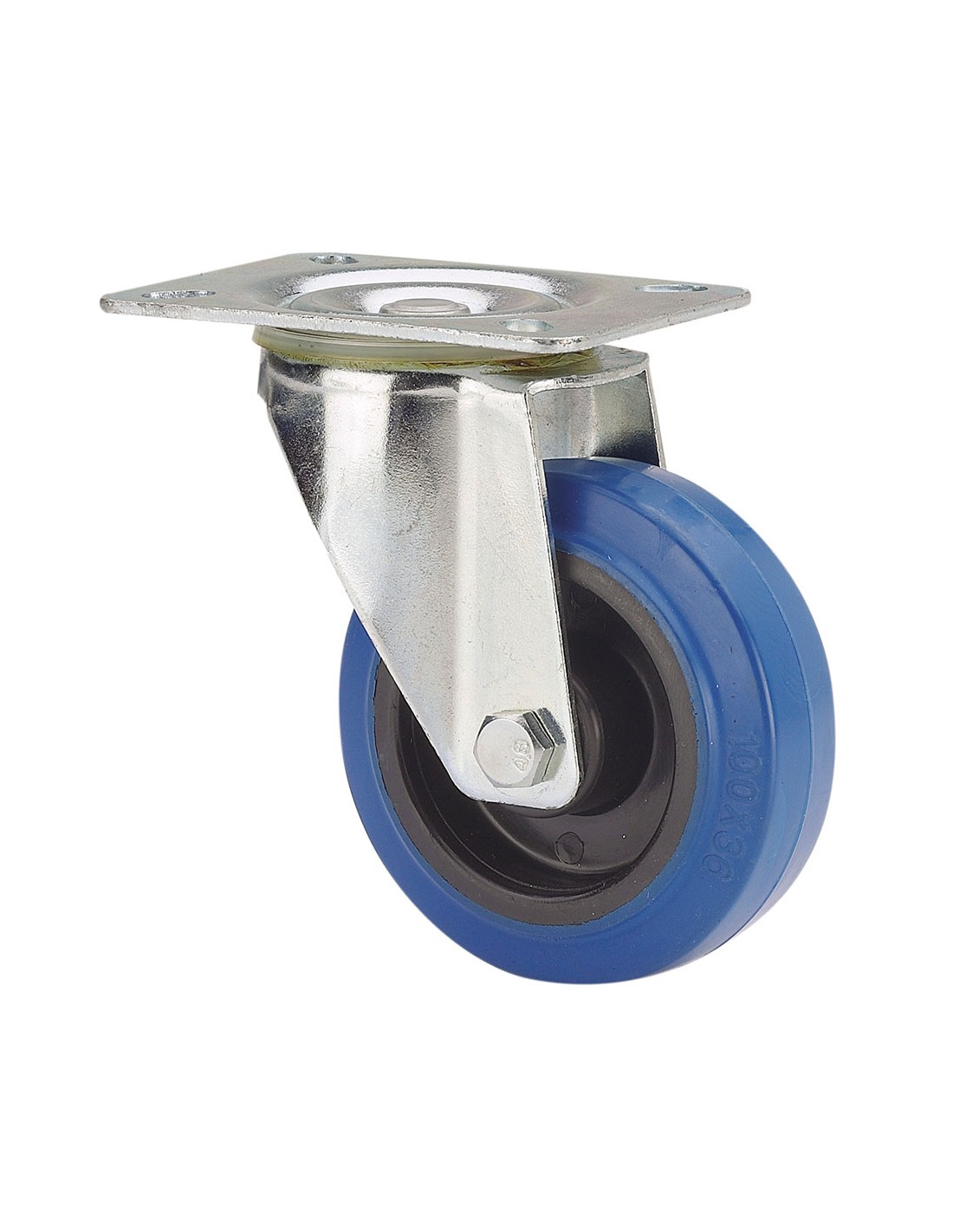 Rueda giratoria con placa y eje de rodillos, color azul, material: poliamix - goma, carga máx. 80 kg, ø 8 cm