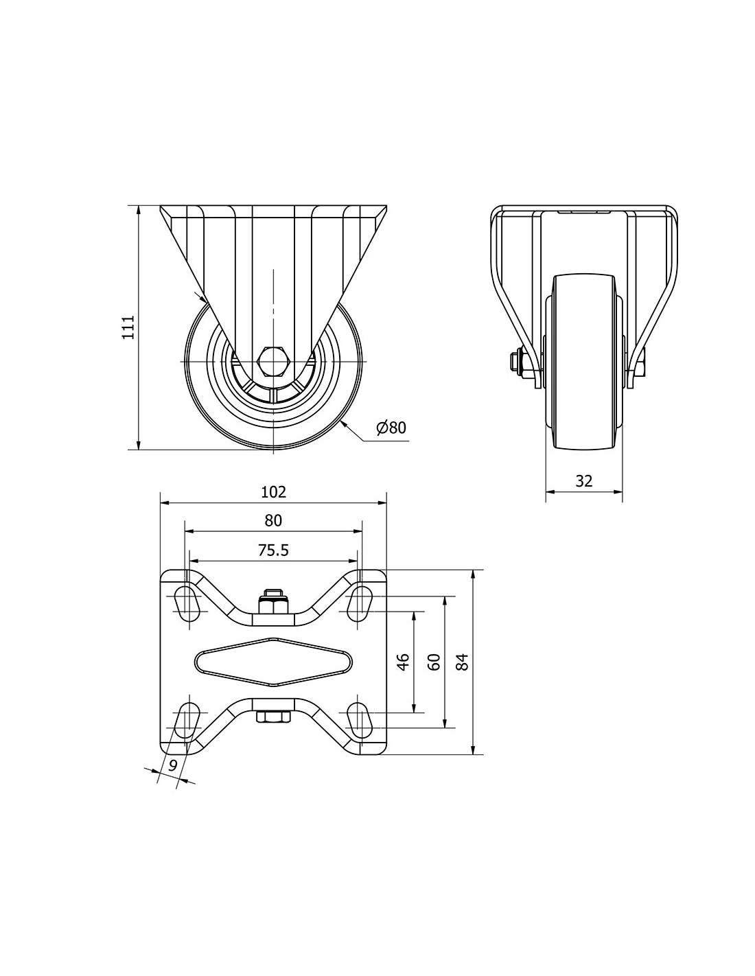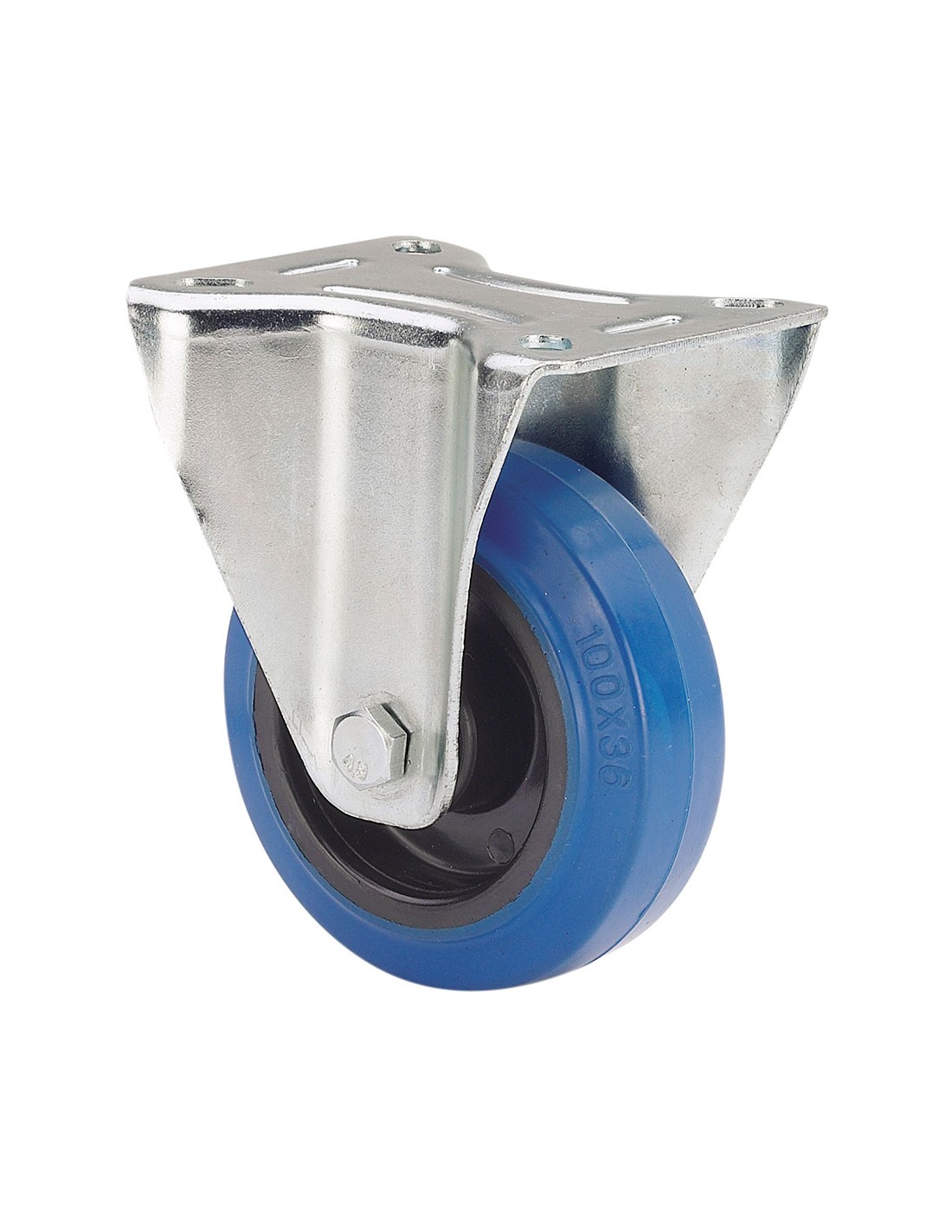 Rueda fija con placa y eje de rodillos, color azul, material: poliamix - goma, carga máx. 80 kg, ø 8 cm