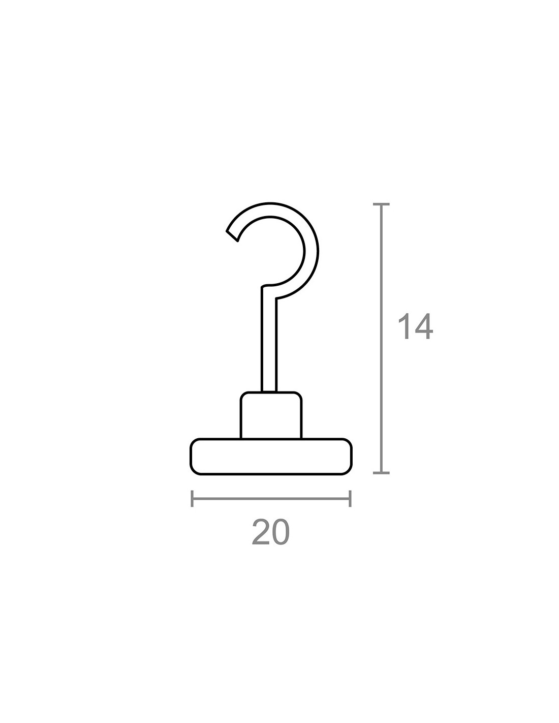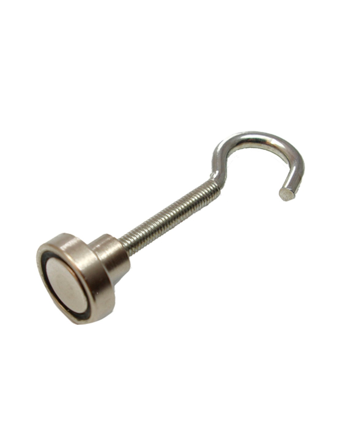 Imán neodimio gancho im32 con gancho soporta una carga máxima de 12,00 kg magnetización axial gauss 3,9 diámetro exterior de 20 mm y largo de 14 mm gancho de métrica 4 material neodimio acabado níquel