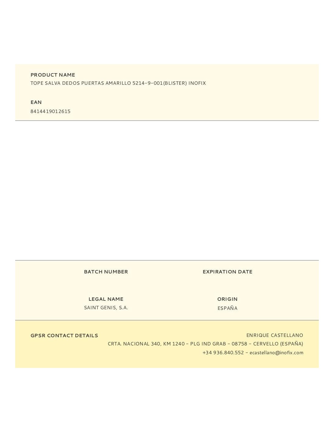 Tope salva dedos puertas amarillo (blister) inofix
