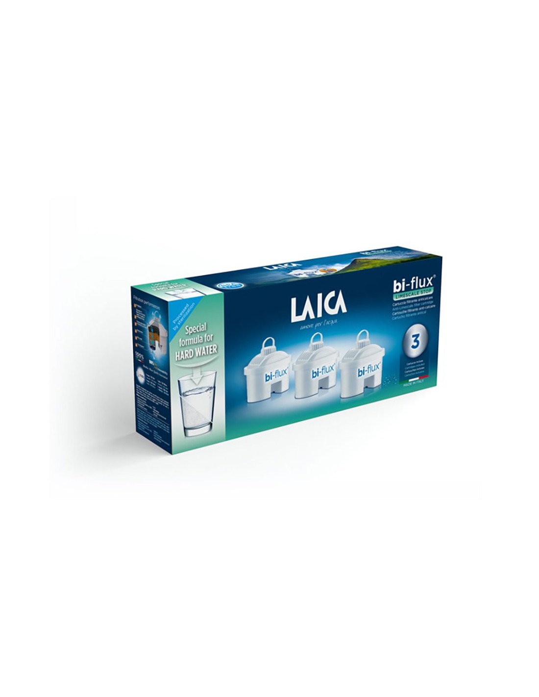 Pack de 3 filtros bi-flux con formulación especial para reducir la cal en el agua del grifo. ideal para areas donde el agua es particularmente dura. reduce eficazmente la cal hasta en un 90% laica