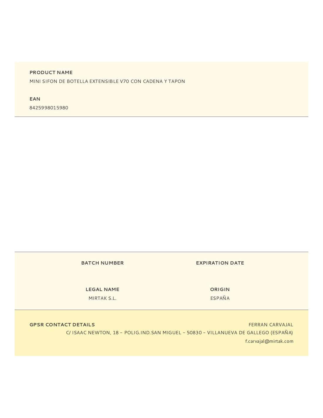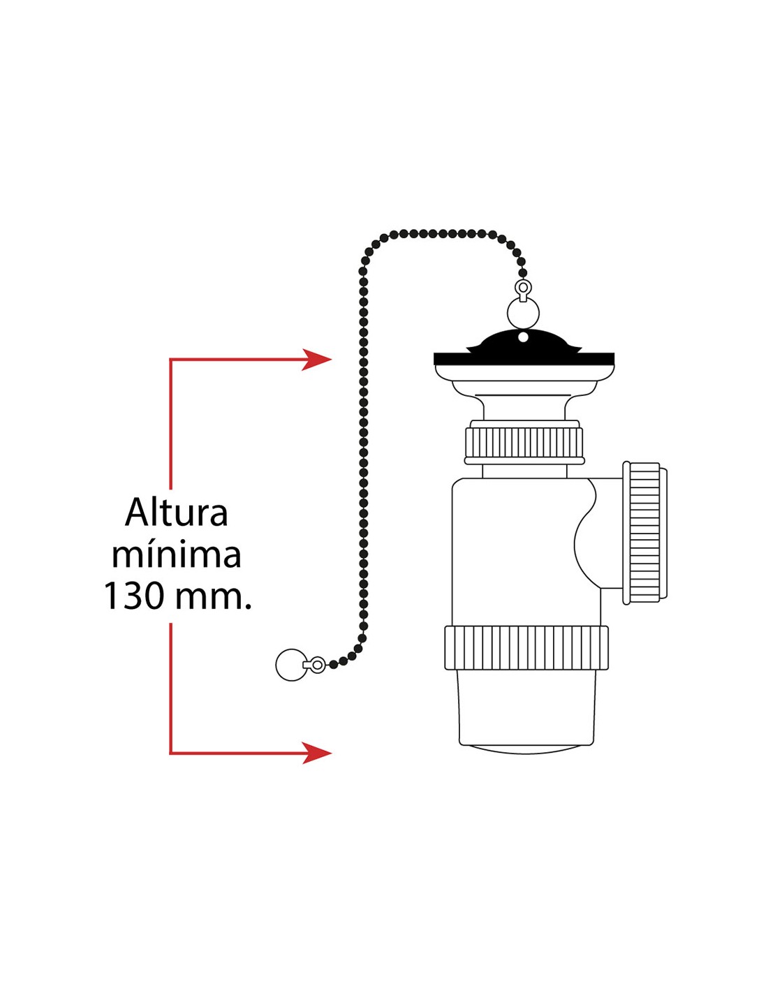 Mini sifon de botella extensible v70 con cadena y tapon. plastico pvc