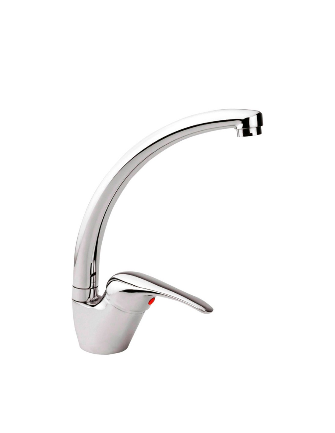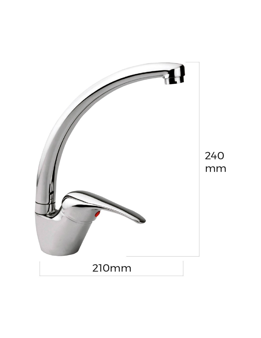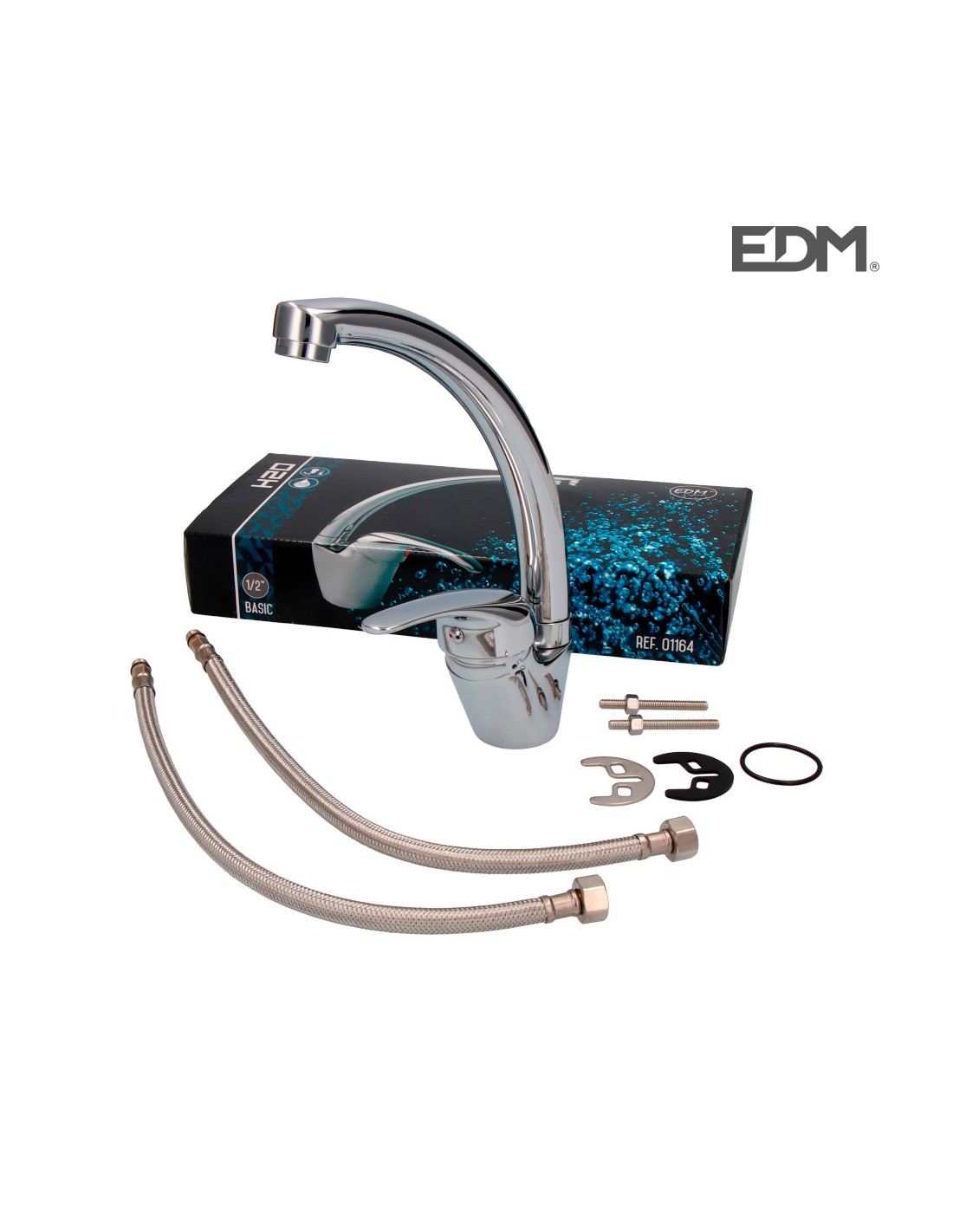 Grifo monomando de cocina. caño alto, color cromado. material: cuerpo de latón, con mango de zinc. cartucho cerámico. incluye: 2 latiguillos de conexión y accesorios de fijación. medidas: 21 x 24 cm