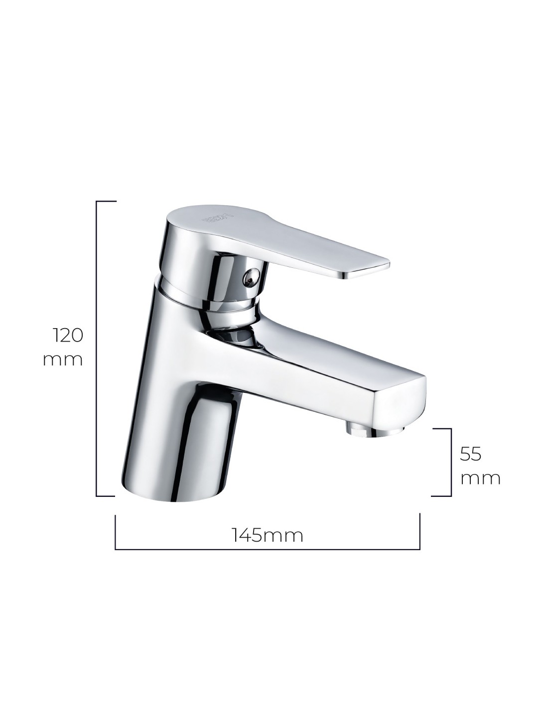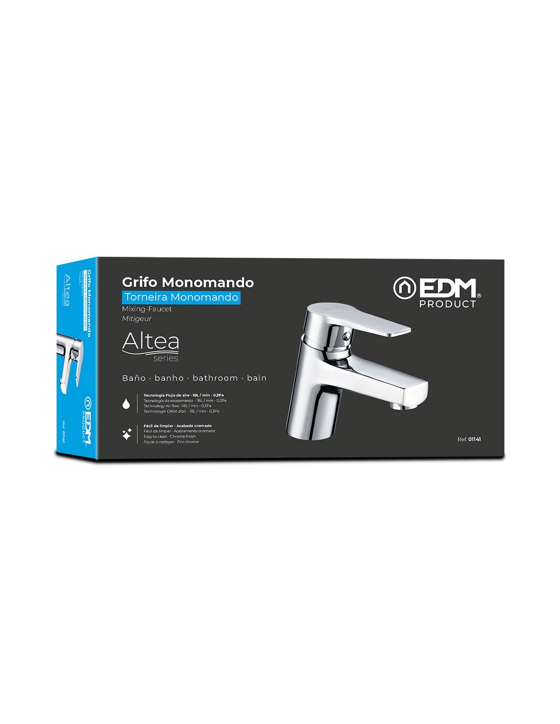 Grifo monomando de lavabo. serie altea, color cromado. material: cuerpo de latón con mango de zinc. cartucho cerámico. incluye: 2 latiguillos de conexión y accesorios de fijación. medidas: 14,5 x 12 cm
