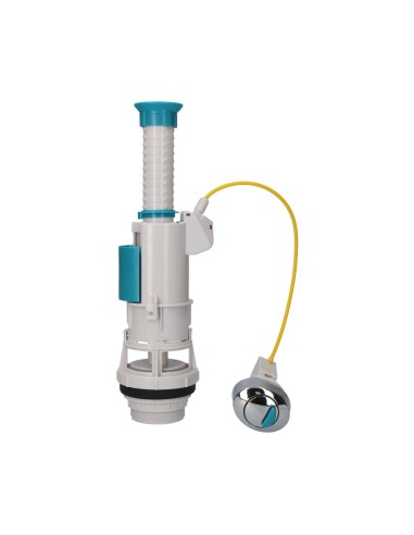 Descarga doble pulsador. sistema eco para ahorro de agua. facil montaje sin herramientas. compatible con la mayoria de cisternas. mecanismo para cisterna tanque bajo. pulsador doble ajustable dia 38-43,5mm. accionamiento por cable