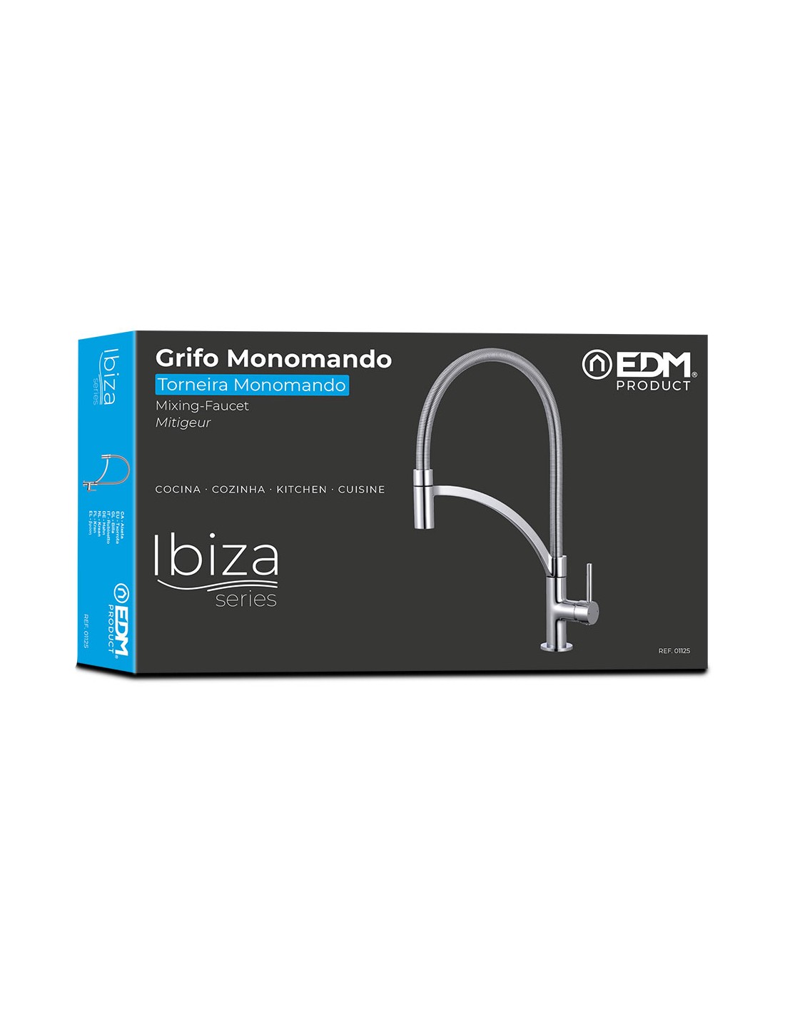 Grifo monomando de cocina caño alto serie ibiza. color cromado. material: cuerpo de latón, con mango de zinc. cartucho cerámico. medidas: 4,9 x 20 x 44,5 cm. incluye: 2 latiguillos de conexión y accesorios de fijación