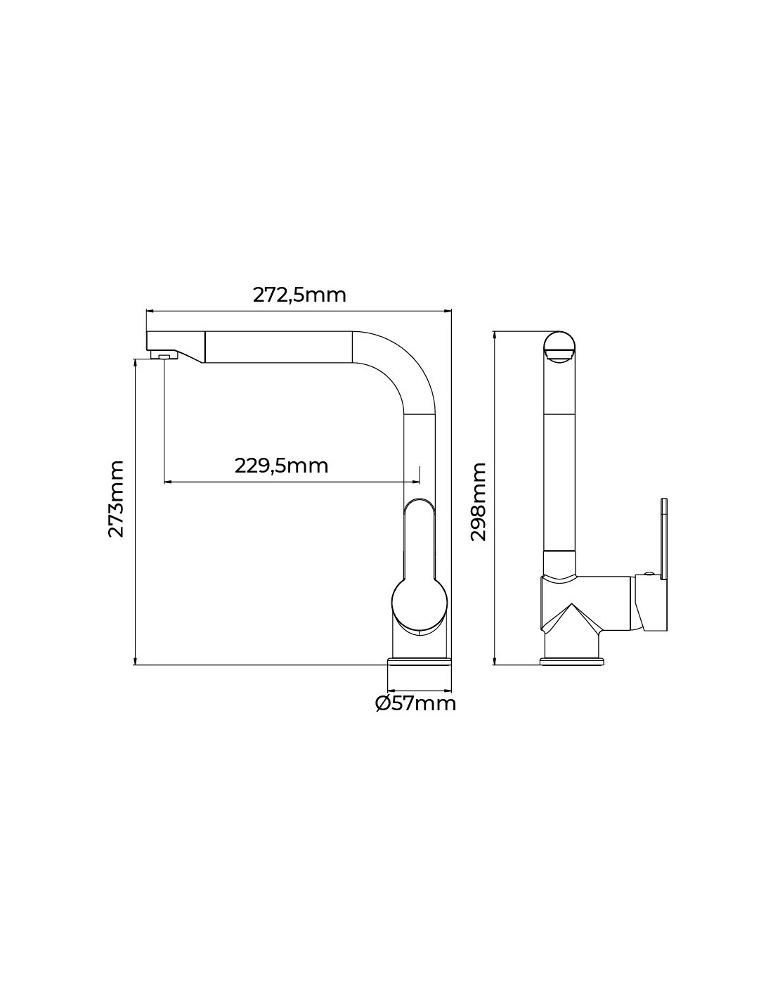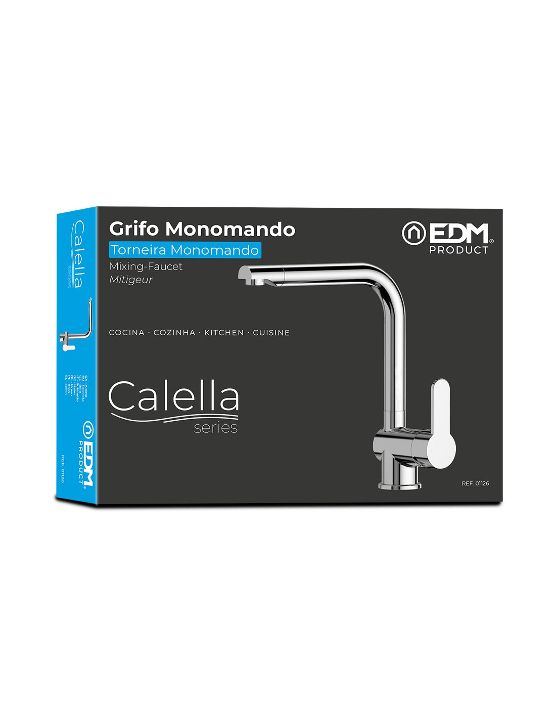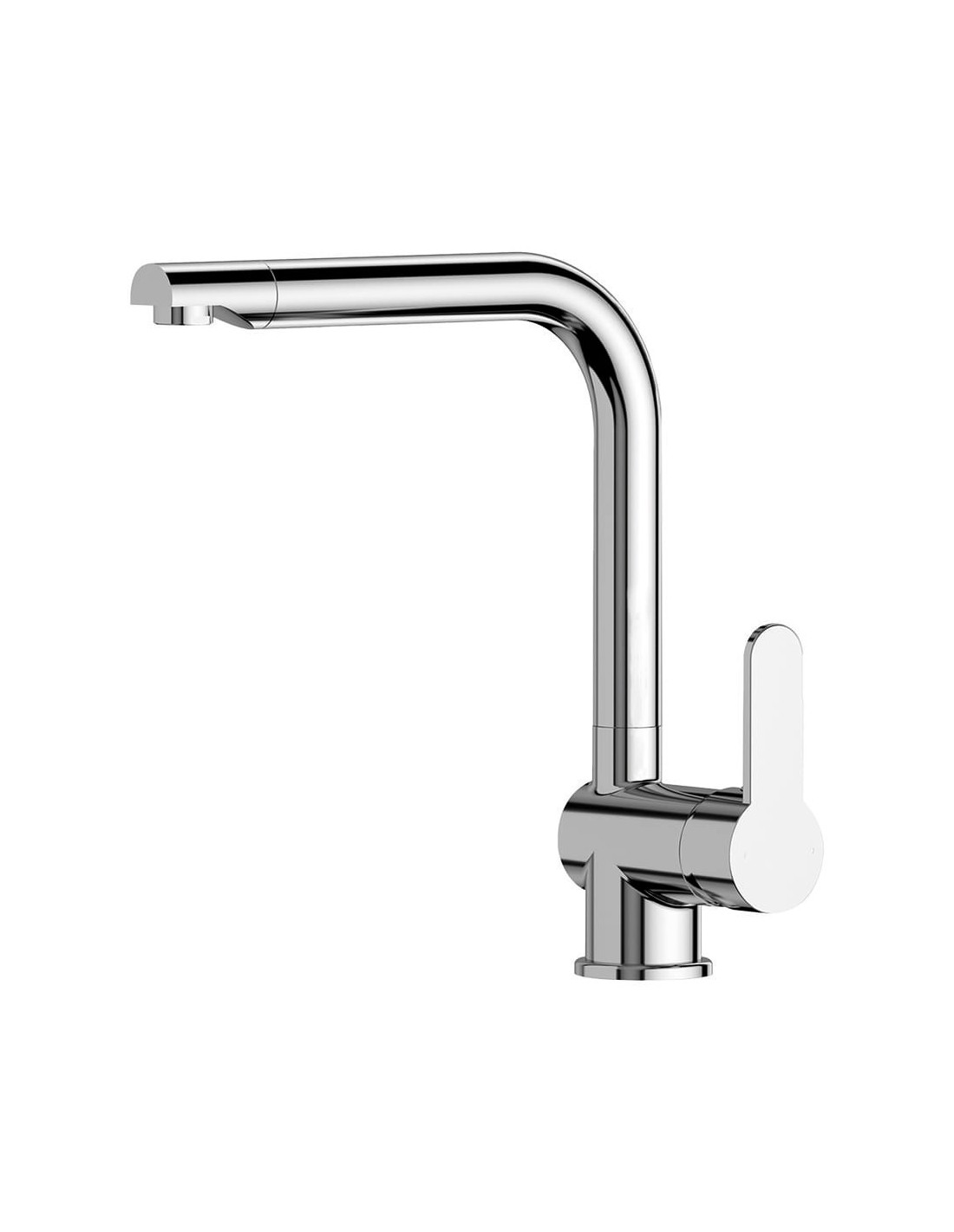 Grifo monomando de cocina caño alto serie calella. color cromado. material: cuerpo de latón, con mango de zinc. cartucho cerámico. medidas: 5,7 x 27,25 x 29,8 cm. incluye: 2 latiguillos de conexión y accesorios de fijación