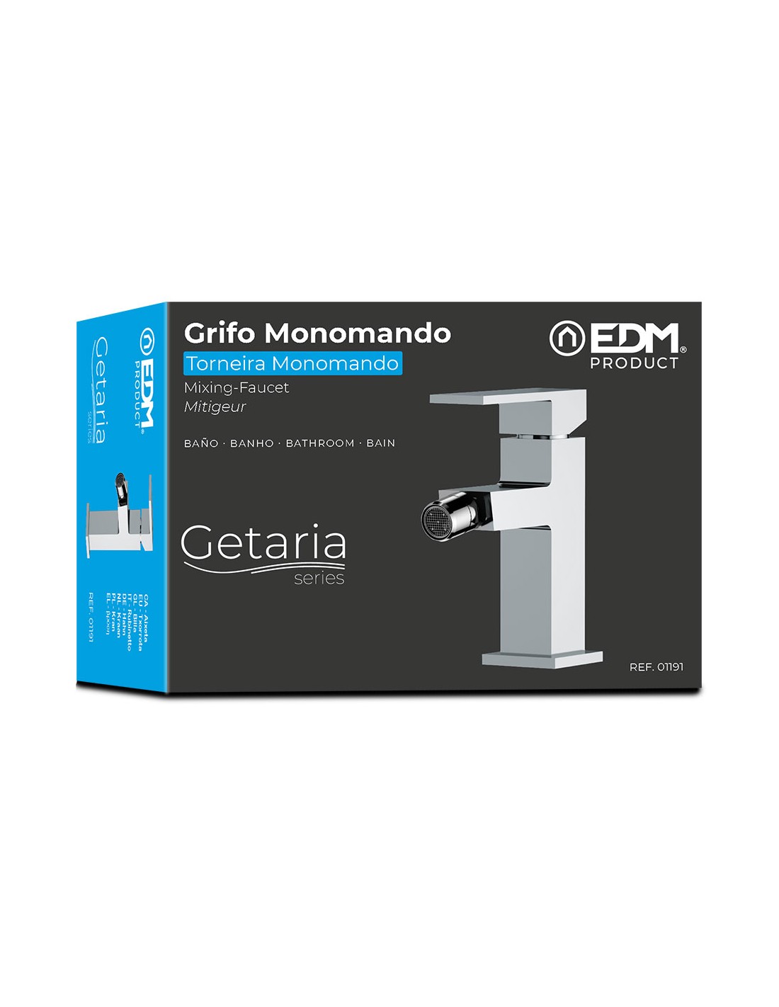 Grifo monomando de bidé serie getaria. color cromo. material: cuerpo de latón, con mango de zinc. con cartucho cerámico. medidas: 5 x 13,3 x 15,7 cm. incluye: 2 latiguillos de conexión y accesorios de fijación