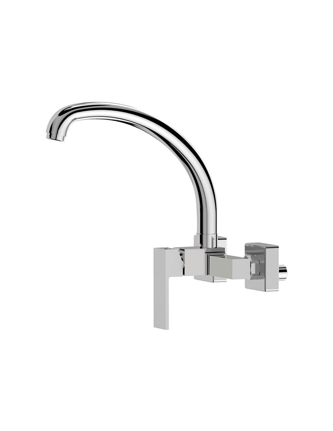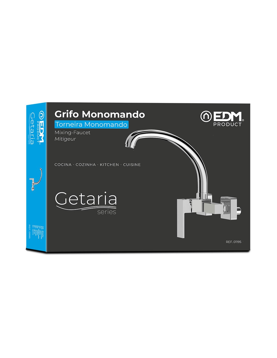 Grifo monomando de cocina caño alto empotrado. serie getaria. color cromado. material: cuerpo de laton, con mando de zinc. cartucho ceramico. medidas: 21x28,4x29,9cm (ancho/fondo/alto). edm