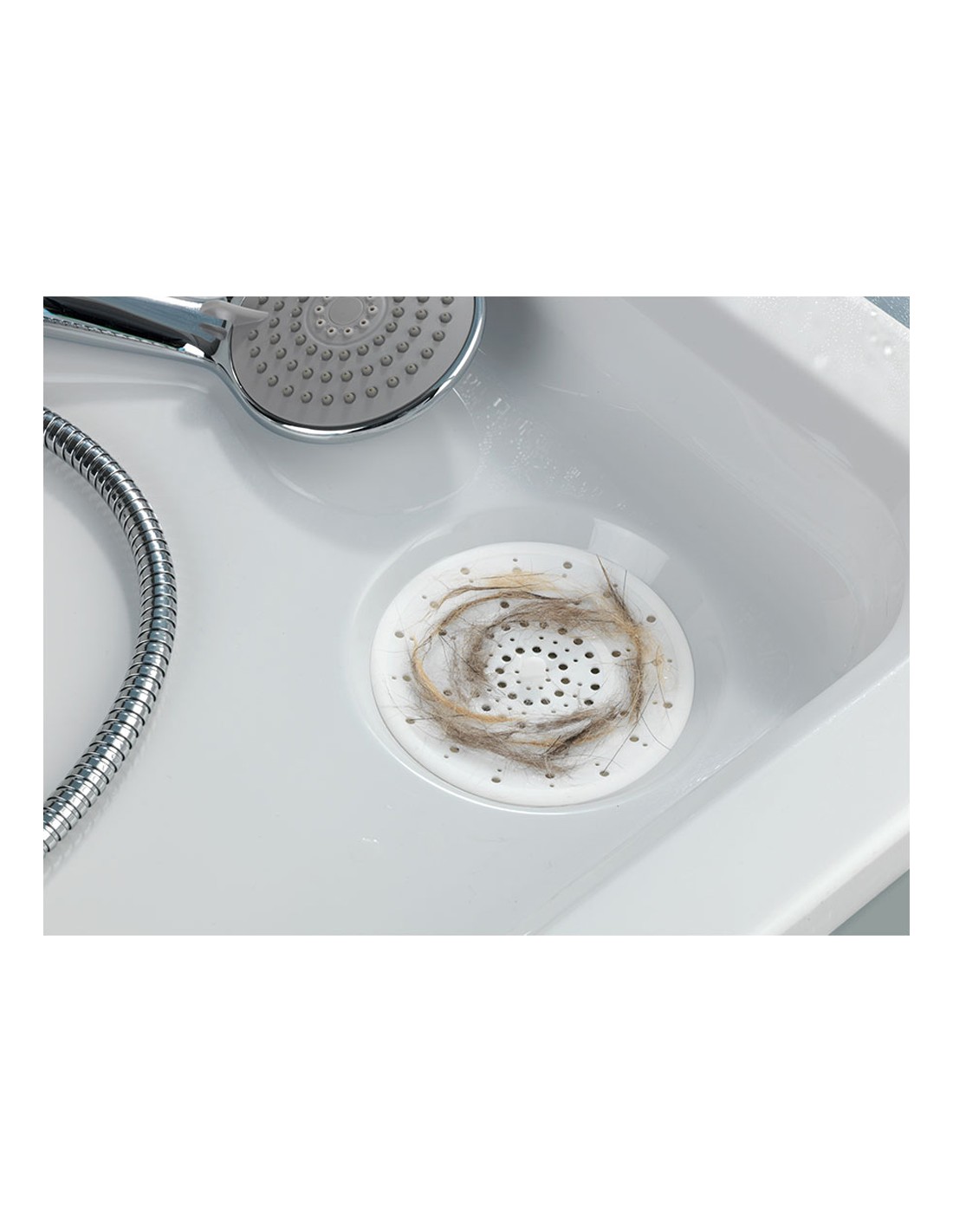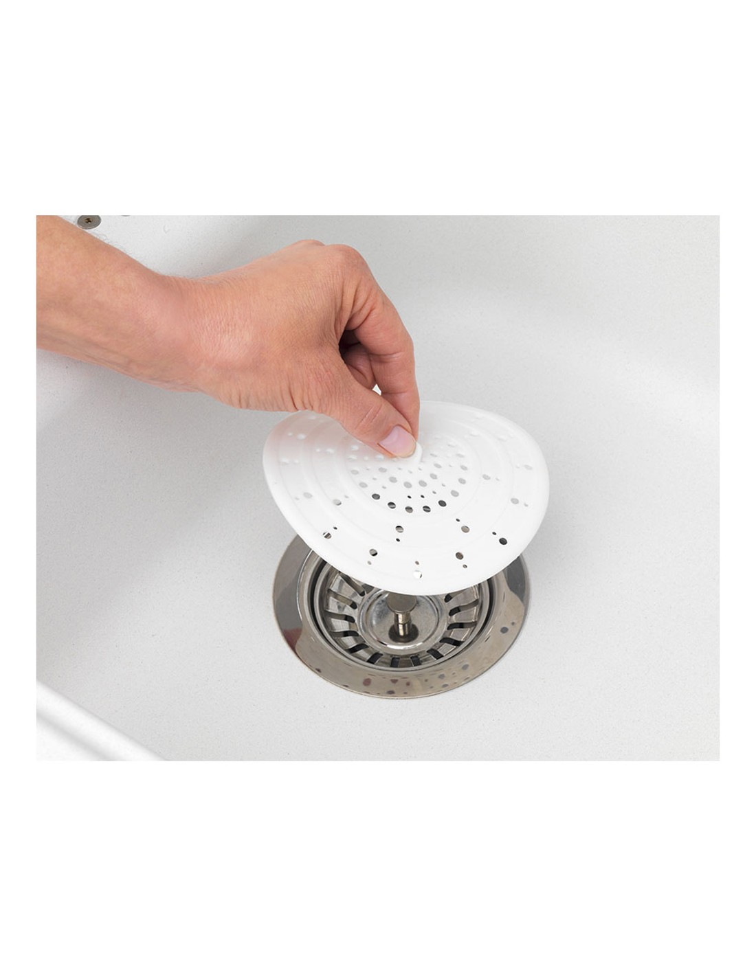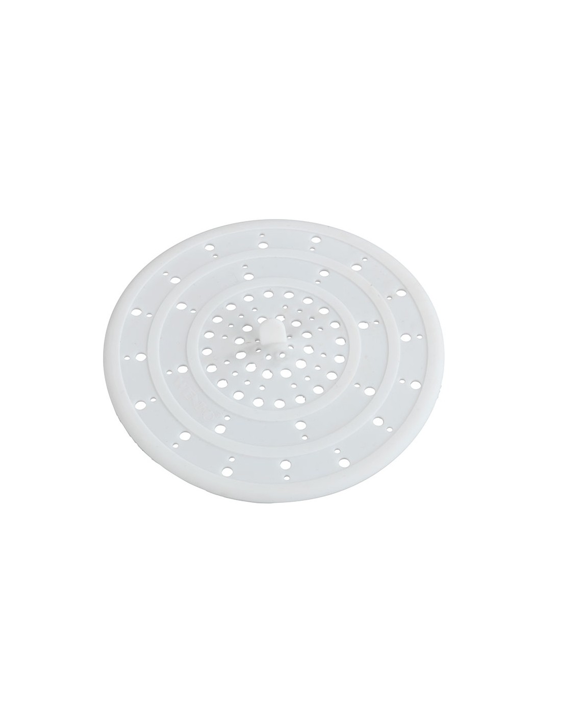 Filtro de desagüe de silicona sava, blanco 8183100 wenko ponerlo simplemente en el desagüe y quedarán retenidos todos los restos en el colador. dimensiones aprox: ø12x0,3cm (diametro/altura)