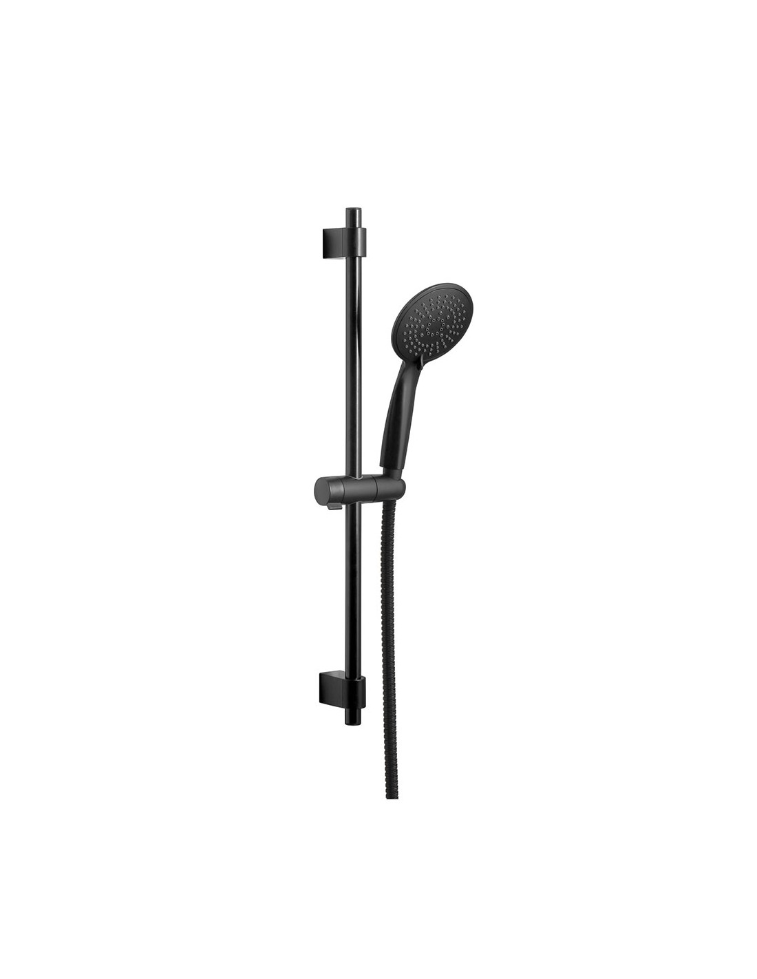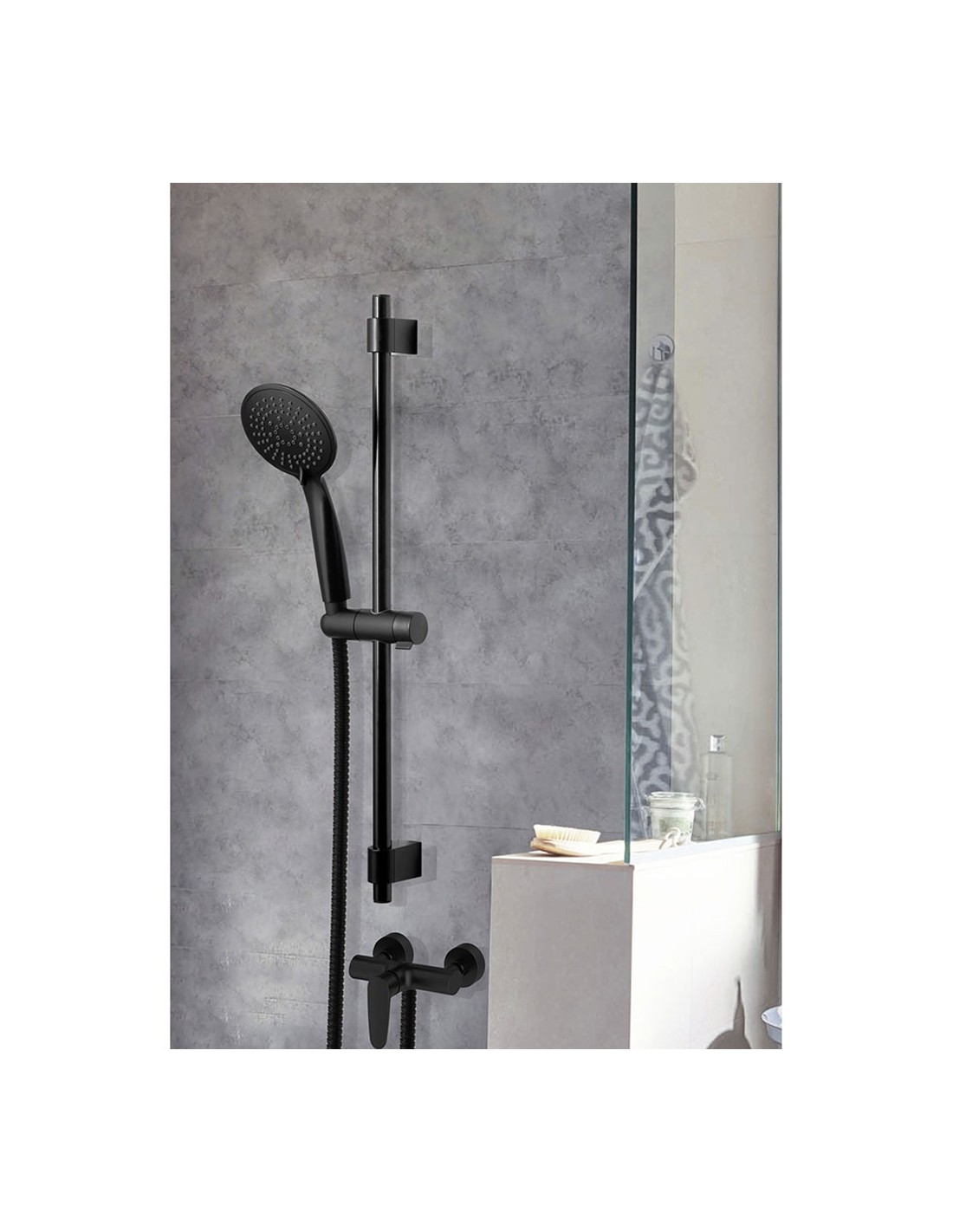 Barra de ducha con flexo y mango. serie young line negro mate 25451100 wenko de acero inoxidable 66cm, negro mate 25451100 wenko cabezal de ducha moderno. conexión universal ½. adecuado para calentador continuo de agua. de larga duración, con boquillas que facilitan la limpieza de la cal. suministro de agua interno por separado. cabezal de ducha con 5 funciones. barra de ducha de acero inoxidable de alta calidad, 66 cm de longitud, ø19mm, con 1 soporte mural deslizante, que permiten cubrir o utilizar los agujeros existentes. incluye manguera de ducha (150cm), de acero inoxidable, conexión estándar de ½“. manguera interior resistente a la presión, elástica, extensible y resistente a las dobladuras. larga duración.