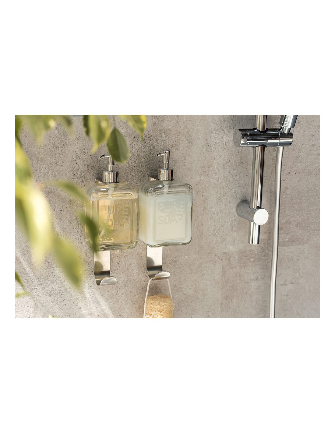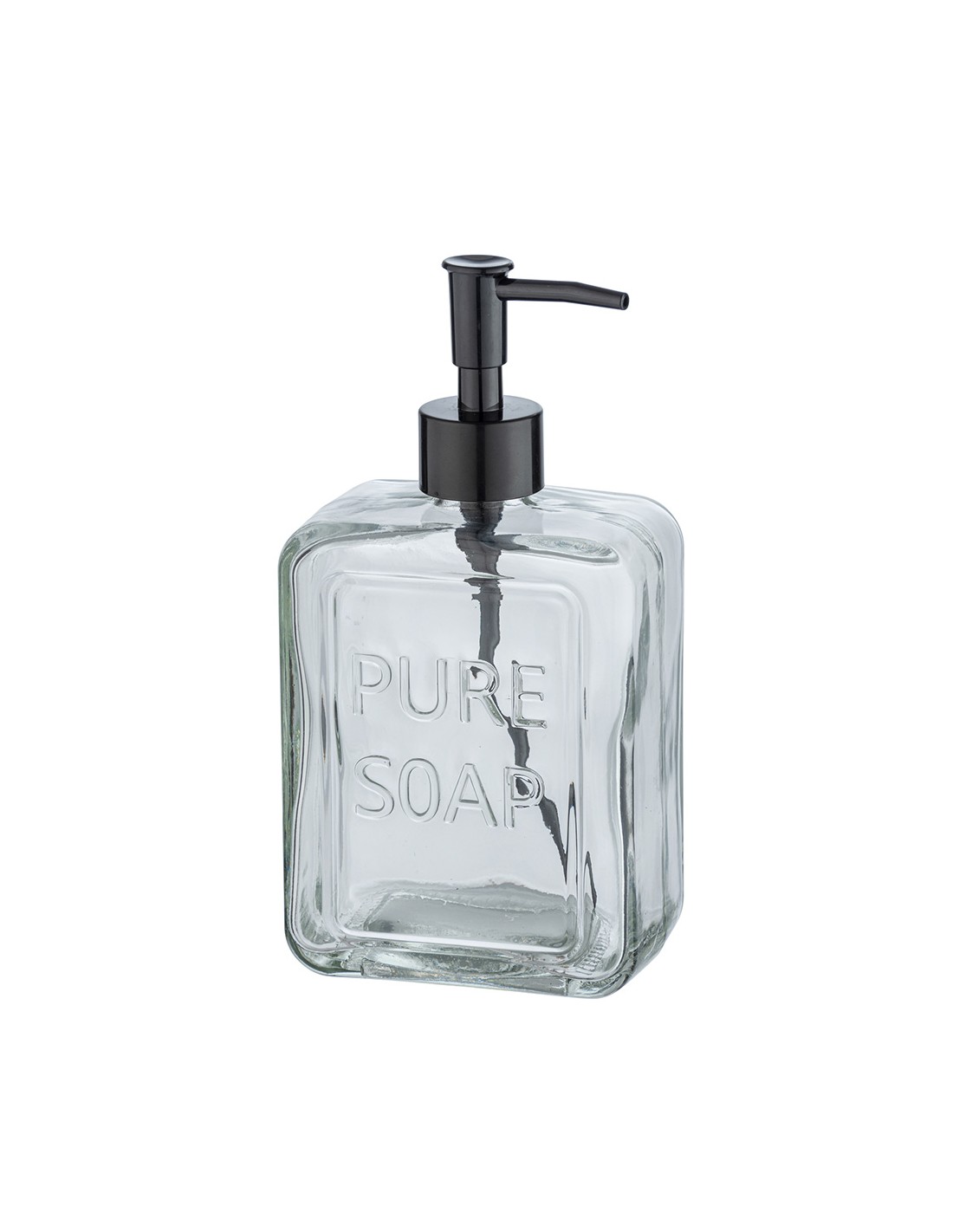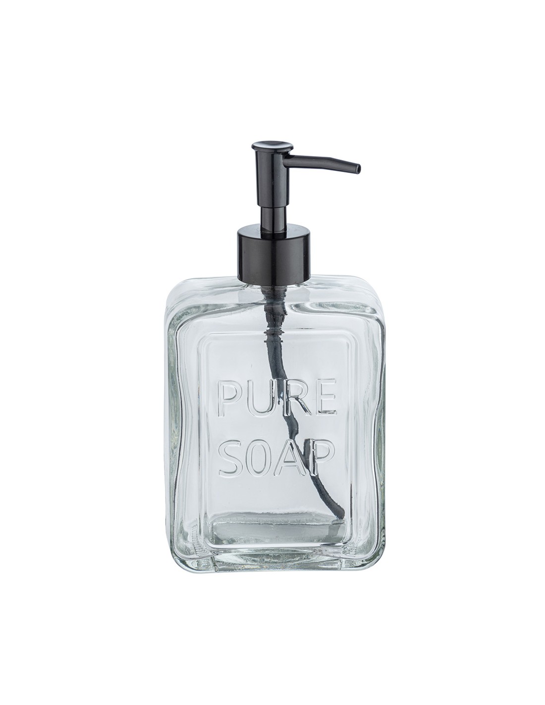 Dosificador de jabón pure soap transparente. dosificador de jabón de vidrio con texto