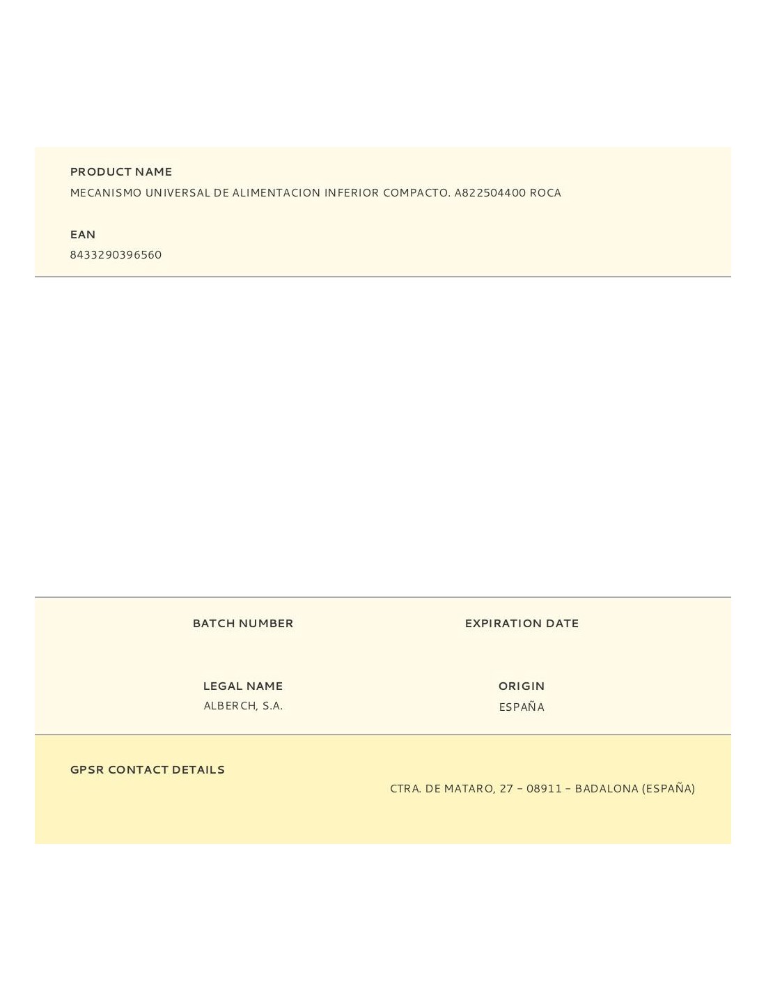 Mecanismo universal de alimentacion inferior compacto. a822504400 roca. mecanismo universal de alimentación inferior con rosca metalica, compacto y llenado rápido. dmensiones: 105x340x70mm