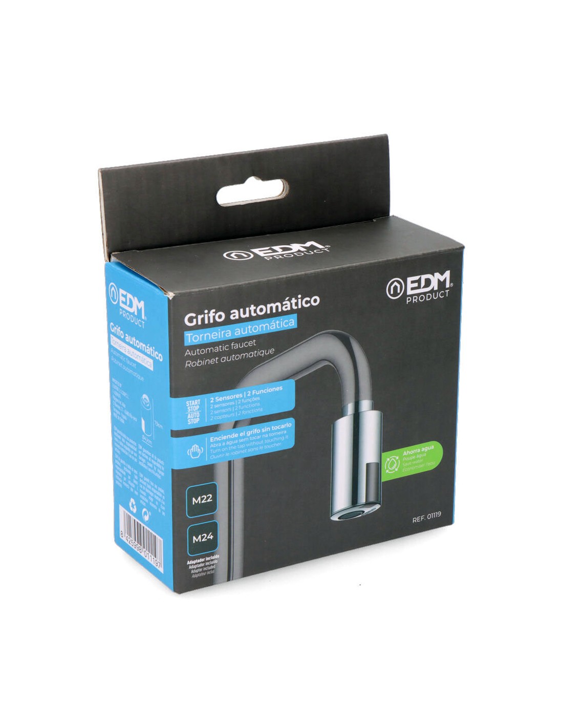 Grifo automático a batería .para rosca m22 o h24. con dos sensores, enciende el grifo sin tocarlo. incluye adaptador m22 y m24. se recarga por usb, hasta 9 meses de batería. ideal para el ahorro del agua