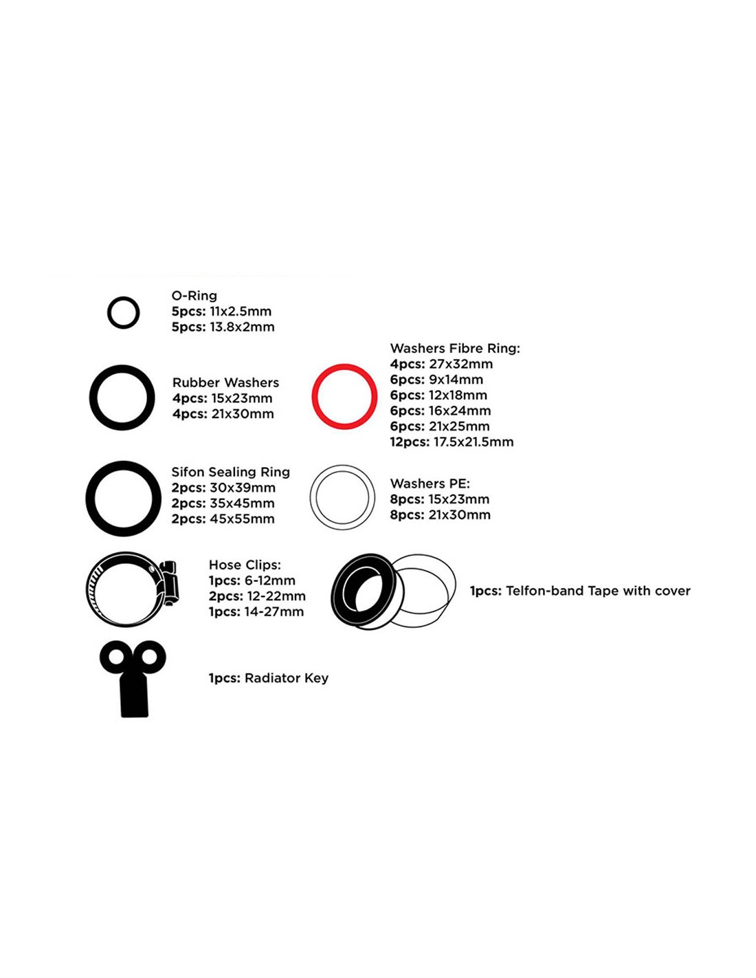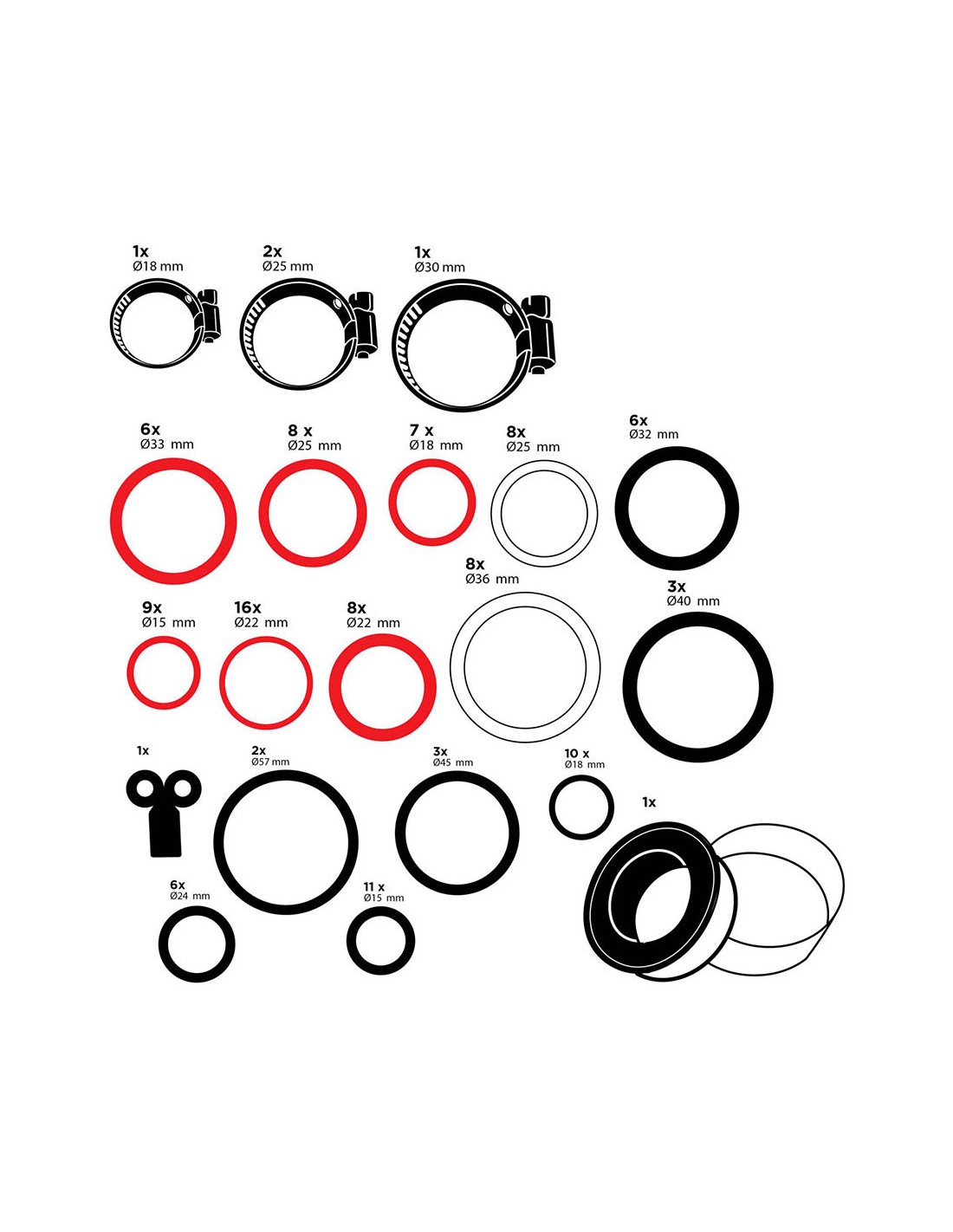 Surtido de juntas, arandelas y abrazaderas, 86 piezas ass black+decker