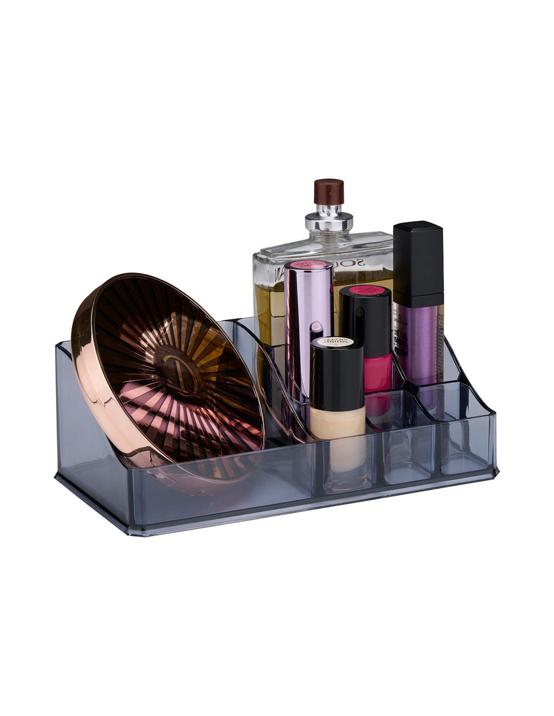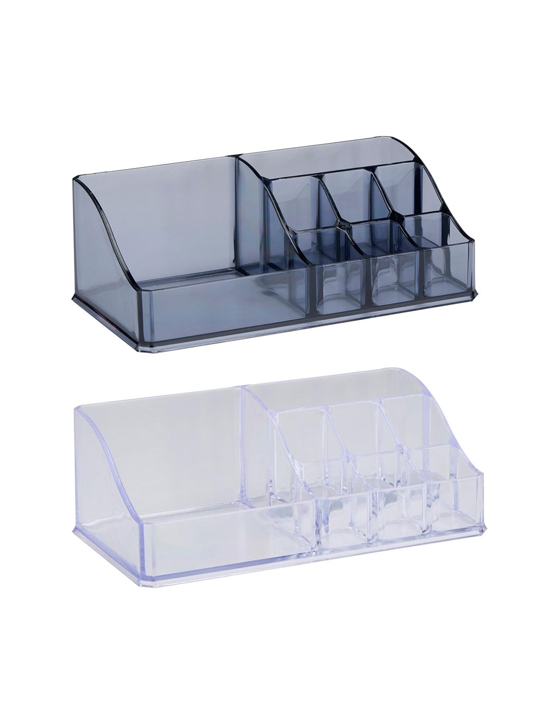 Organizador de cosméticos acrílico, 2 colores, con 8 compartimentos, distribución rectangular. touch of beauty