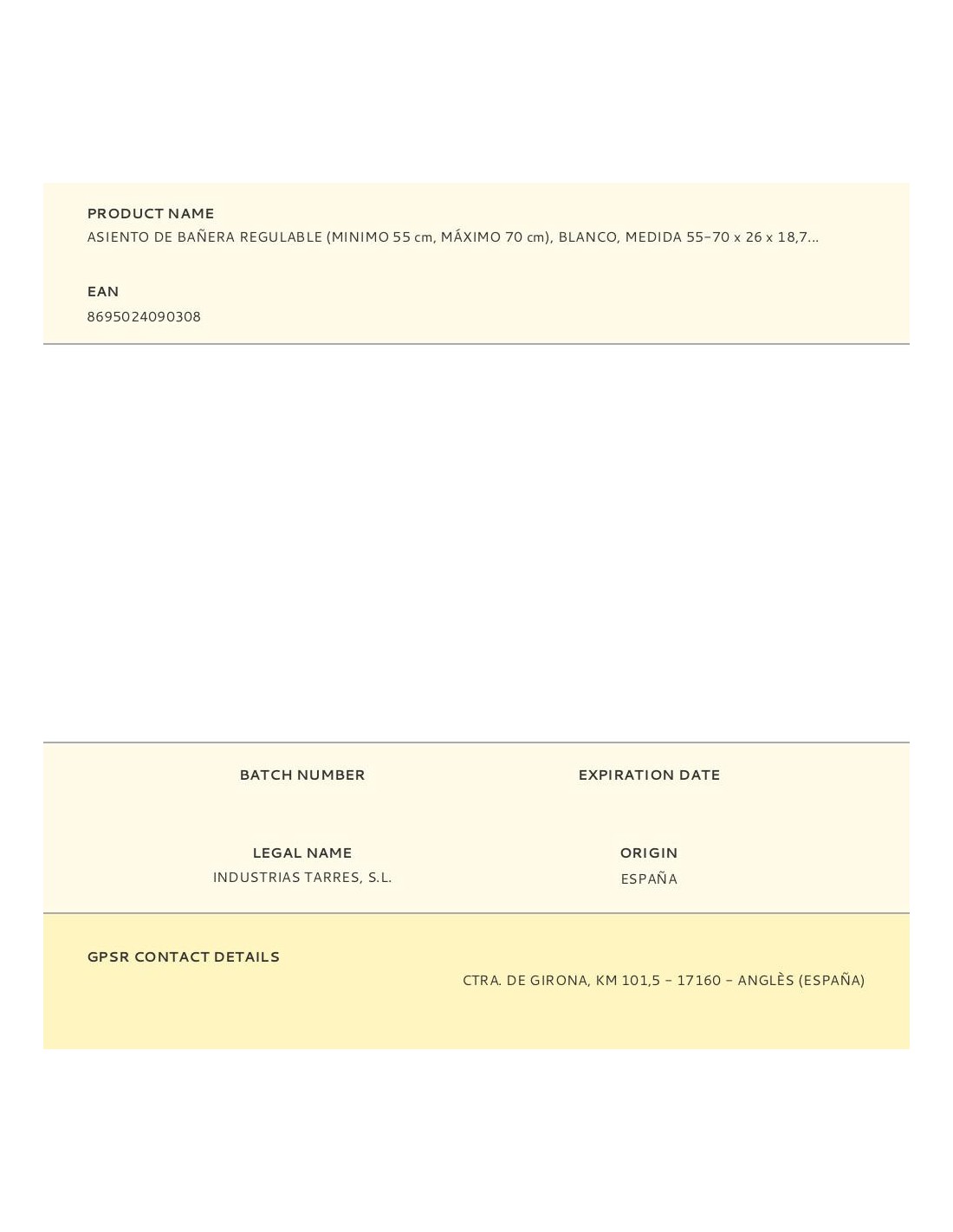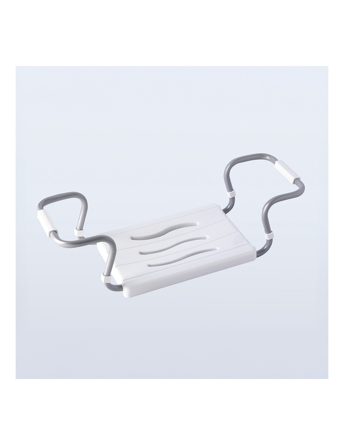 Asiento de bañera regulable (minimo 55 cm, máximo 70 cm), aluminio, blanco, medida 55-70 x 26 x 18,7 cm