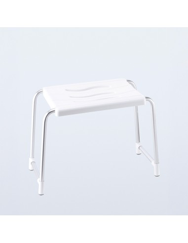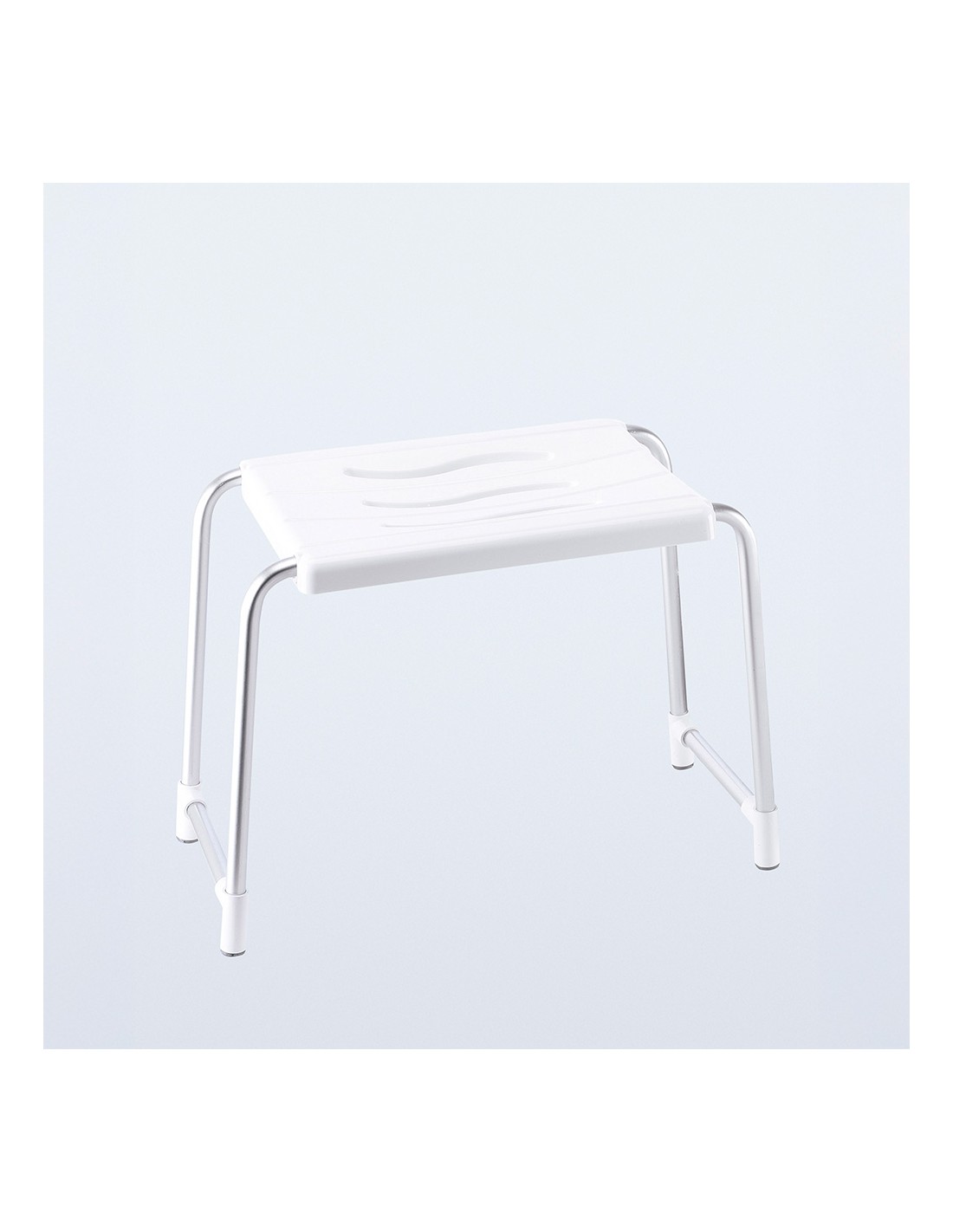 Taburete de baño patas aluminio gris asiento plástico blanco, 50 x 24 cm