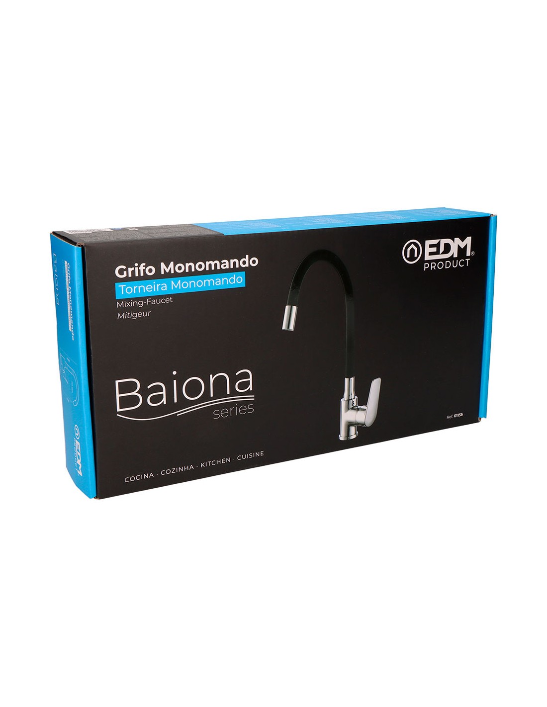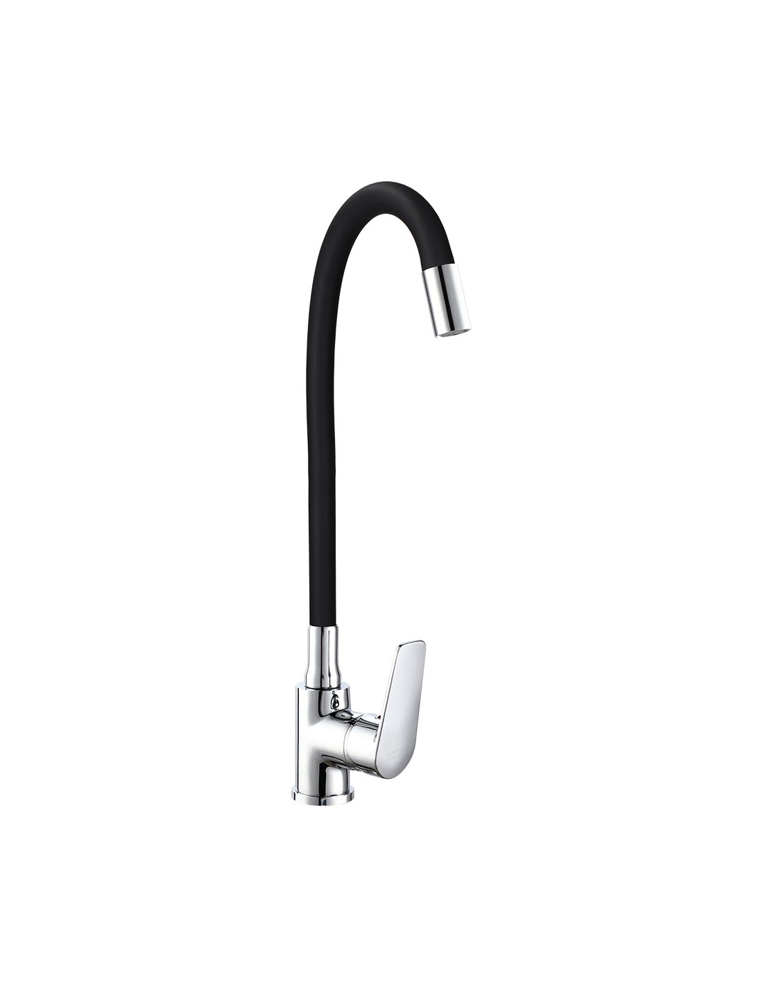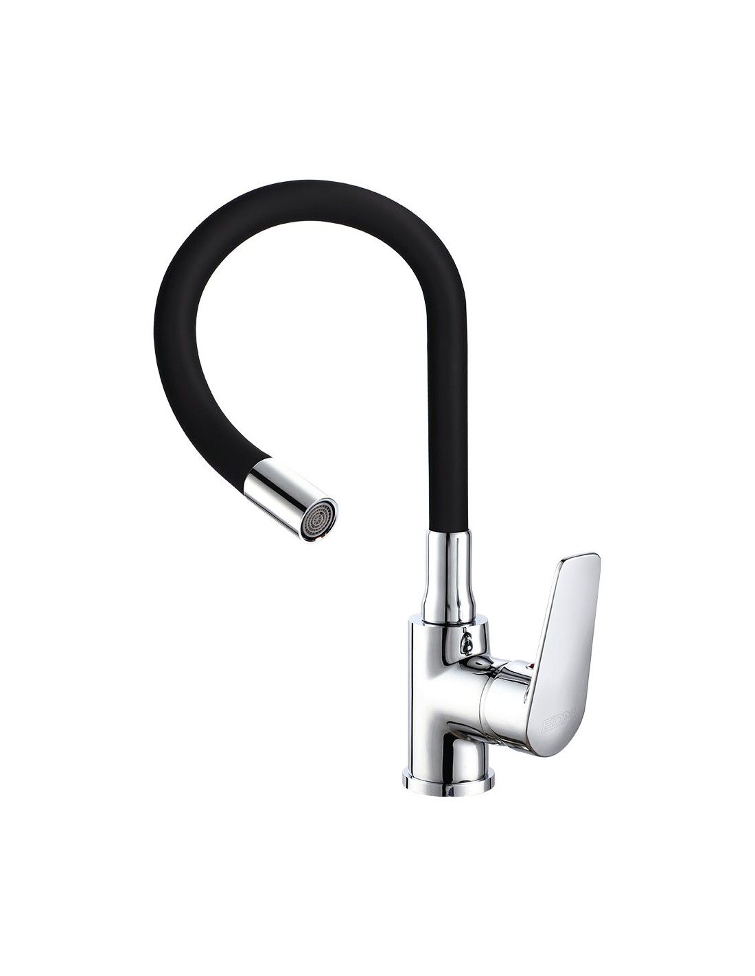 Grifo de cocina monomando con cuerpo de latón con mango de zinc recubierto de goma acabado cromado cartucho de 35 mm caño de goma flexible negro de 40 cm con atomizador y sistema de ahorro de agua dimensiones 213 x 46 x 360 mm