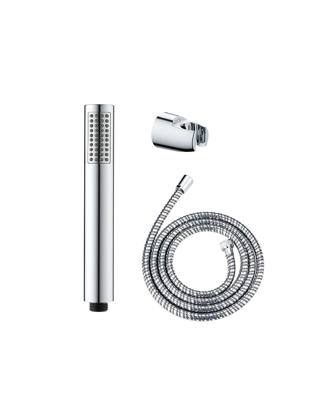 Conjunto de ducha de conexión universal ½". adecuada para calentador de flujo continuo de agua. de larga duración, con boquillas para facilitar la limpieza de la cal. suministro de agua interno por separado. cabezal con 5 funciones. manguera de ducha, piezas de conexión de plástico cromado, conexión estándar de ½ - se adapta a todos los cabezales de ducha. recubrimiento de acero inoxidable. fácil de limpiar y duradero. composición: abs, cloruro de polivinilo. medidas: 3,3 cm x 22 cm x 3,3 cm
