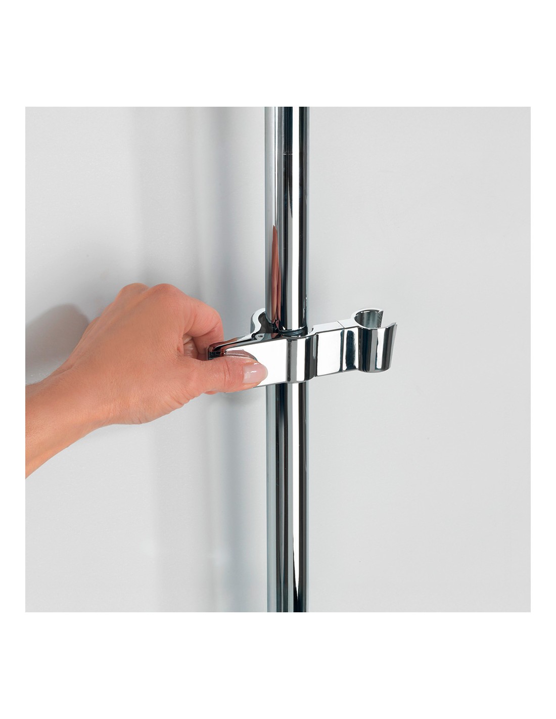 Soporte ajustable de cabezales para barras de ducha con ø 19 - 25 mm. fácil de colocar incluso sin desmontar la barra. composición: metal y acero inoxidable. medidas: 11,7 x 2,7 x 3 cm