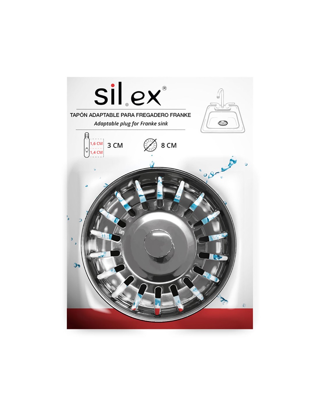 Filtro de rejilla de fregadero metalico franke adaptable con junta de goma y eje. rejilla ø8 cm, junta de goma ø5,2 cm, eje sin rosca 2,8 cm