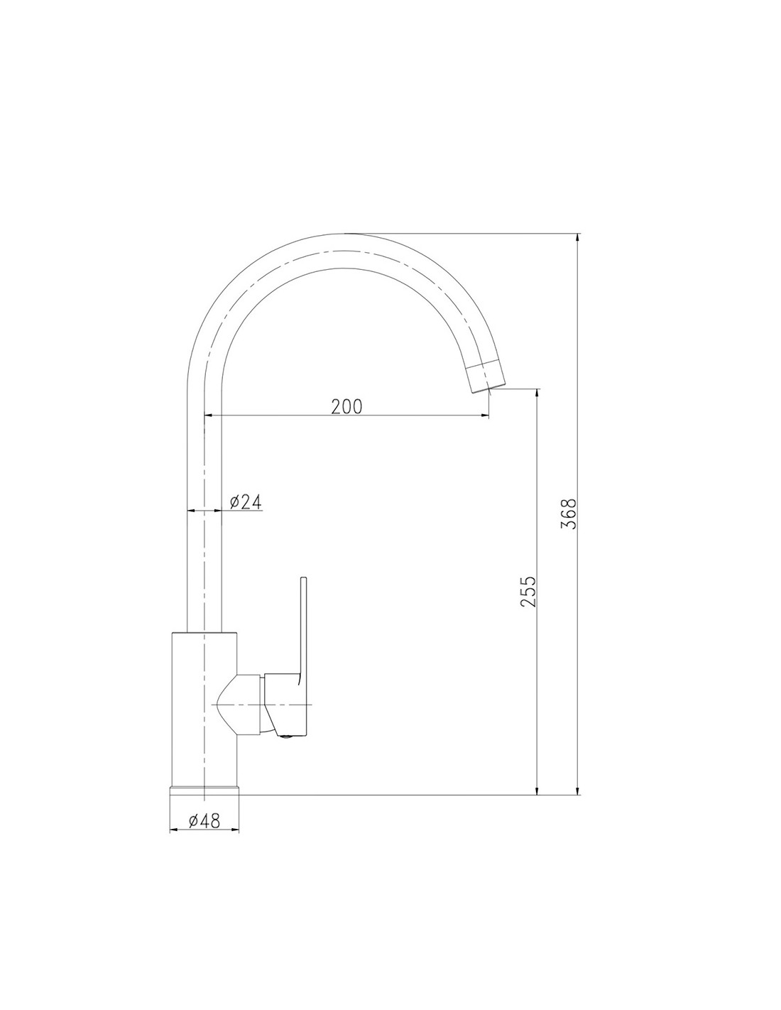 Grifo de cocina monomando miño con caño alto, mezclador repisa. cuerpo de acero inoxidable 304 negro mate, cartucho ø35, aireador h22, caño giratorio incluye: enlaces de alimentación flexibles m10 3/8" x 400 mm, sistema de instalación fácil y rápido. dimensiones: ø48 x 200 x 368 mm