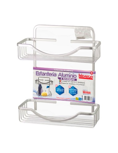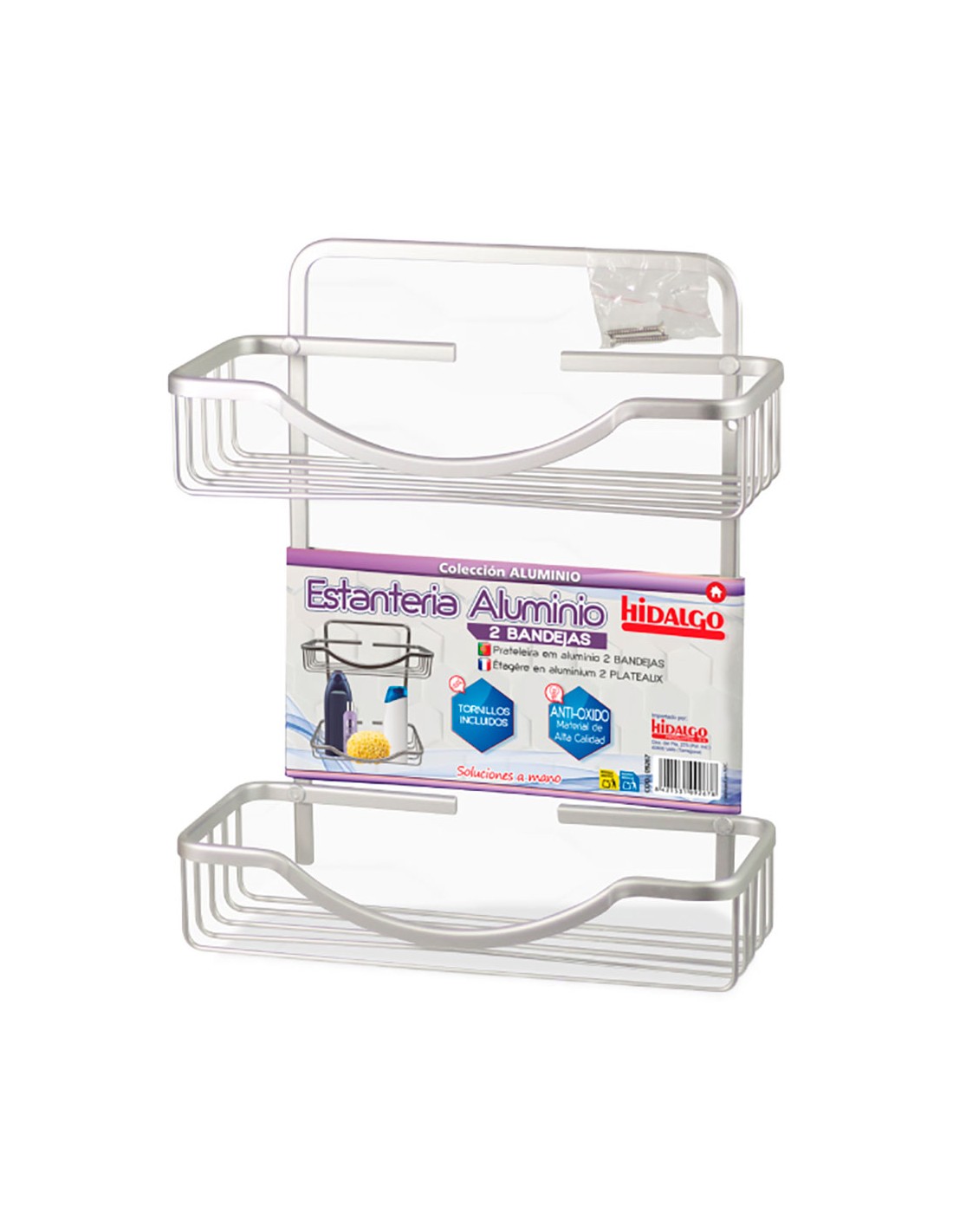 Estante organizador fabricado en aluminio, diseñado para instalación fija en muros de baño, cocina u otros espacios cuenta con 2 bandejas para almacenamiento de productos de higiene, limpieza o accesorios su sistema de fijación mediante tornillos garantiza una instalación firme y duradera 28,5 x 12,5 x 34 cm