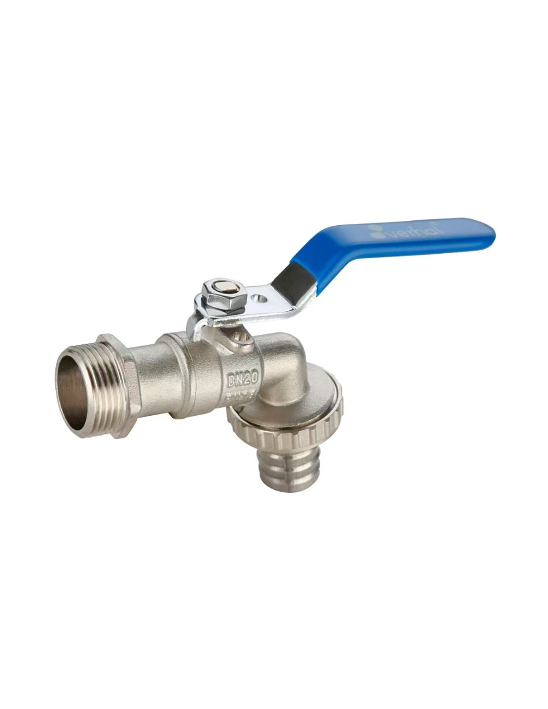 Grifo de jardín eco racor manguera ¾ x 1 pulg precintable. temperatura máxima 75°c. juntas nbr, asiento teflón. entrada rosca gas. cierre 1/4 vuelta. cuerpo: latón niquelado. maneta: acero cromado