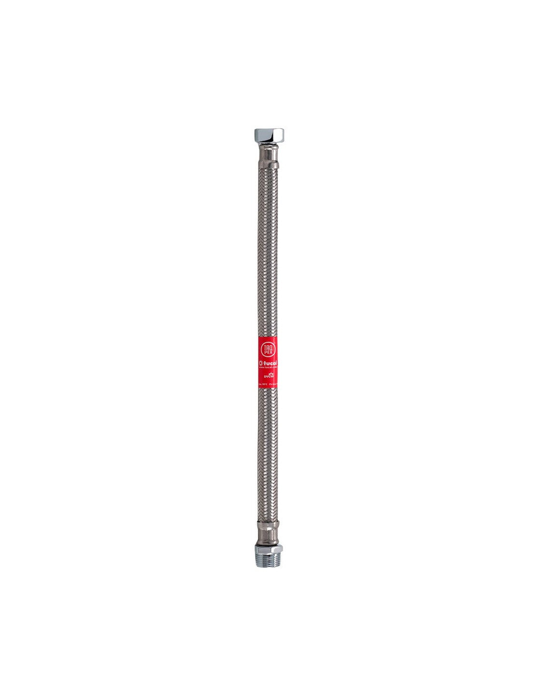 Latiguillo flexible inoxidable sanitario dn8x12 macho-hembra de ½ pulg de 400 mm de longitud, ø6 mm interior, caudal 28 l/min, máximo 10 bar - 70°c, para agua potable