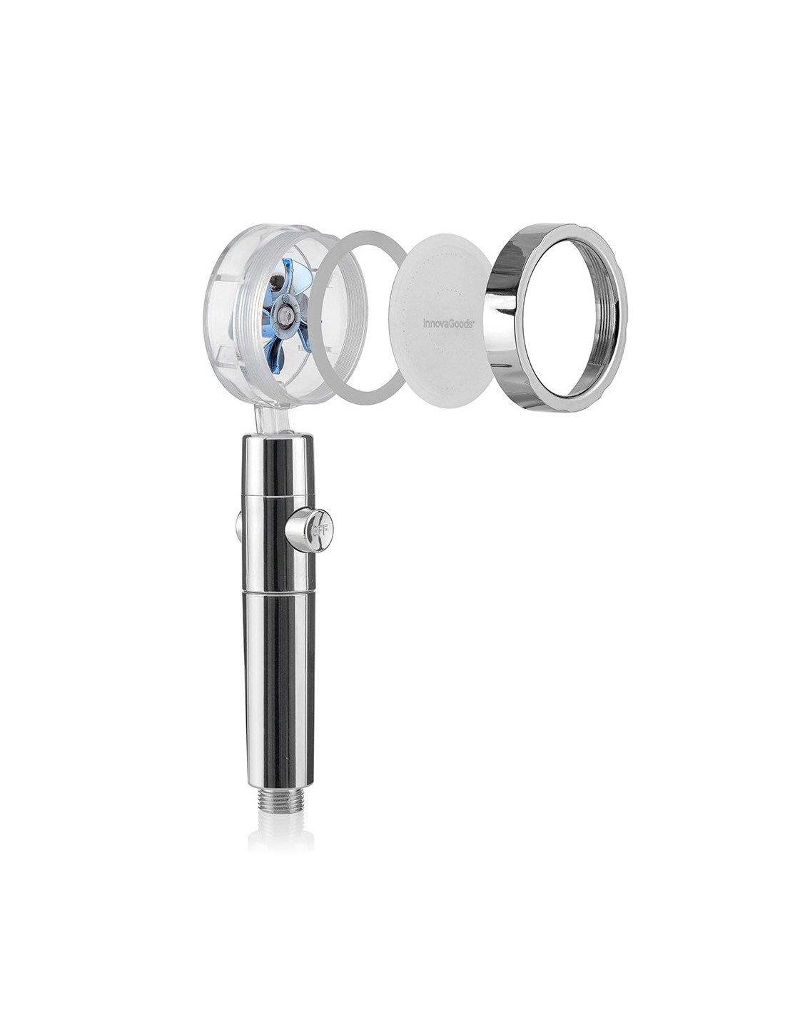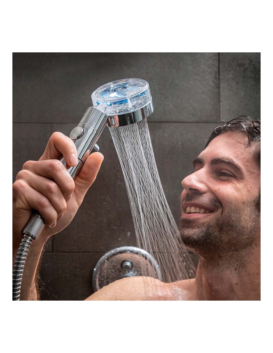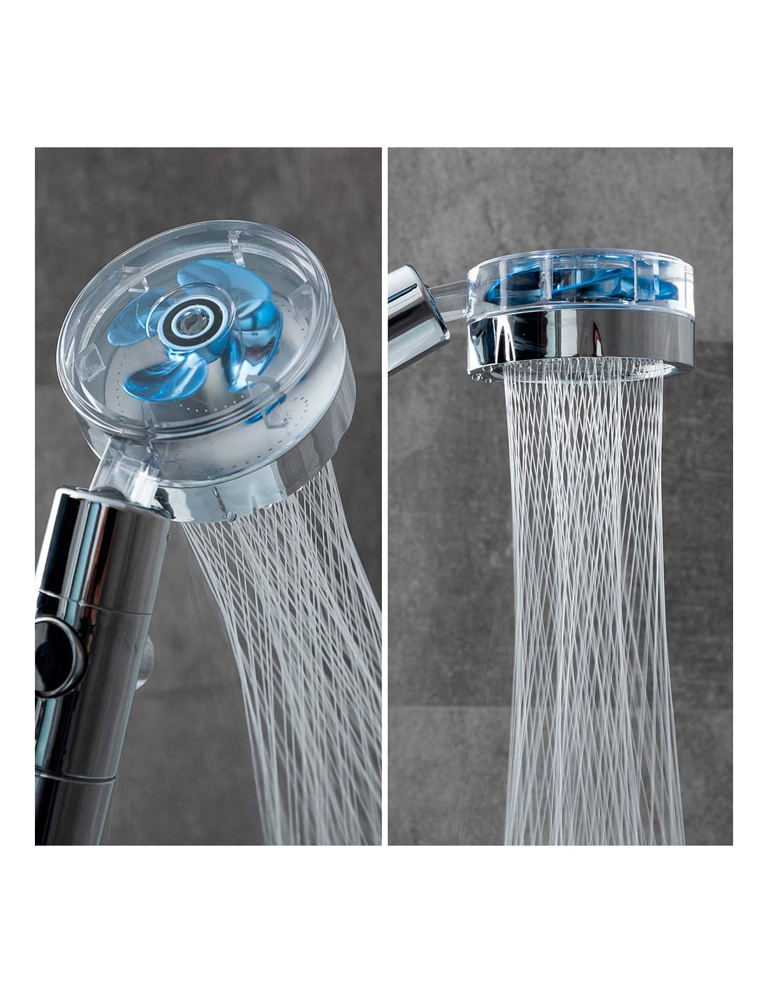Mango de ducha con hélices de presión y filtro purificador, heliwer. cabezal de ducha ergonómico y rotación 360°, dispone de botón on/off, rosca de métrica estándar g1/2 incluye 1 junta estanca con filtro en la conexión de la manguera y filtro purificador en el cabezal de la ducha (otro de recambio)