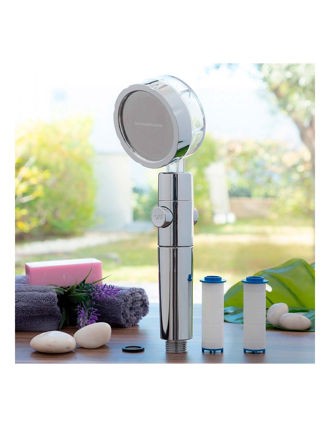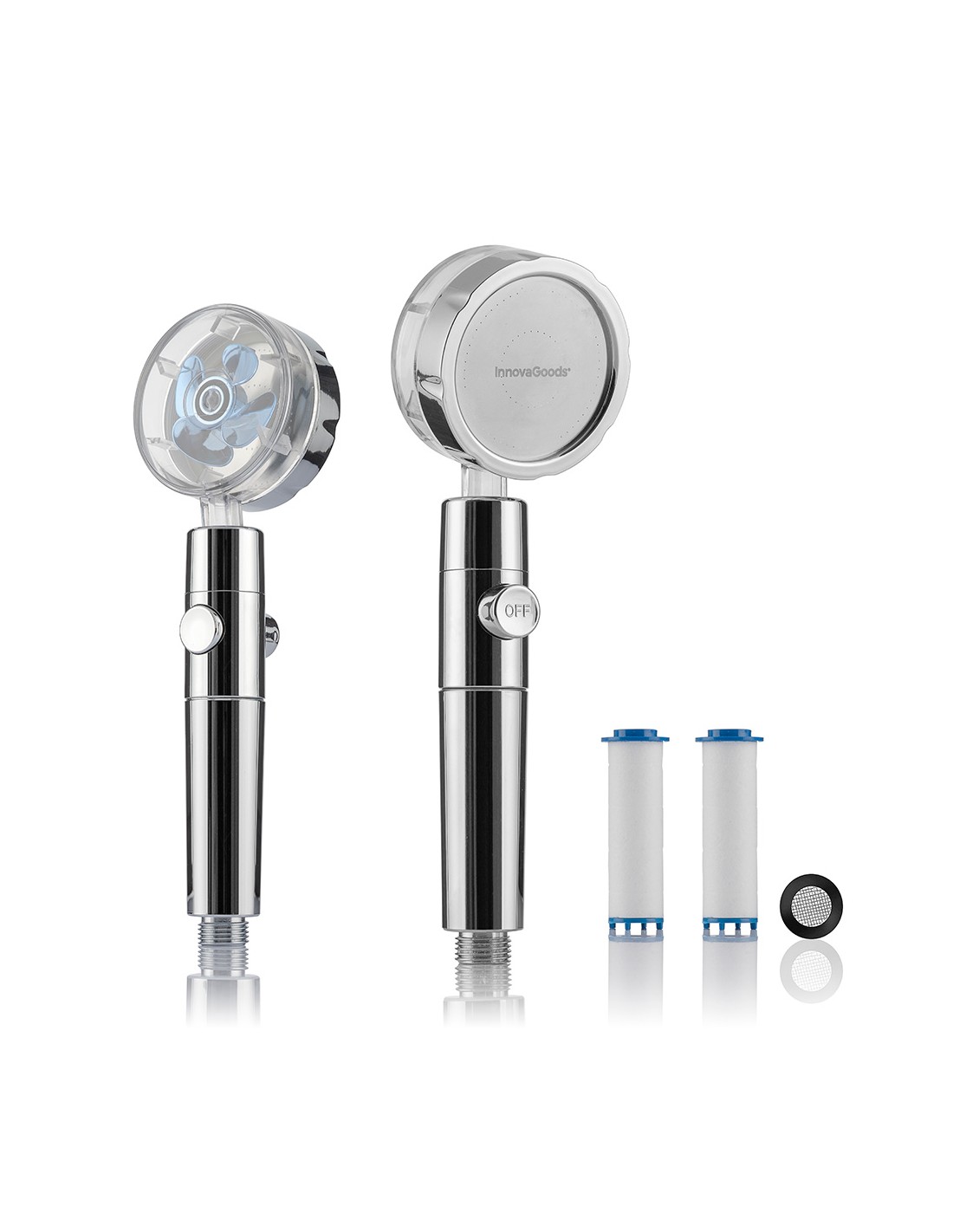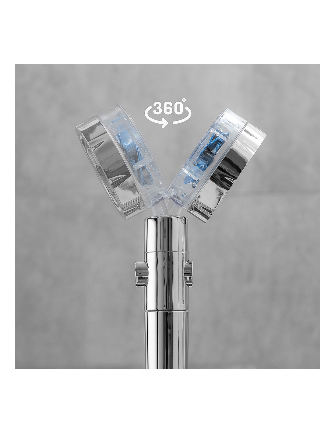 Mango de ducha con hélices de presión y filtro purificador, heliwer. cabezal de ducha ergonómico y rotación 360°, dispone de botón on/off, rosca de métrica estándar g1/2 incluye 1 junta estanca con filtro en la conexión de la manguera y filtro purificador en el cabezal de la ducha (otro de recambio)
