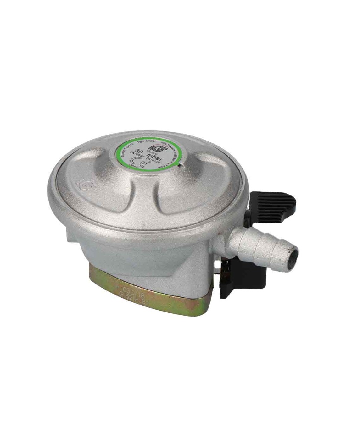 Regulador gas domestico (especial para canarias-ceuta-melilla) presion normal 30 mbar caudal 1,30kg valvula ø20mm com gas