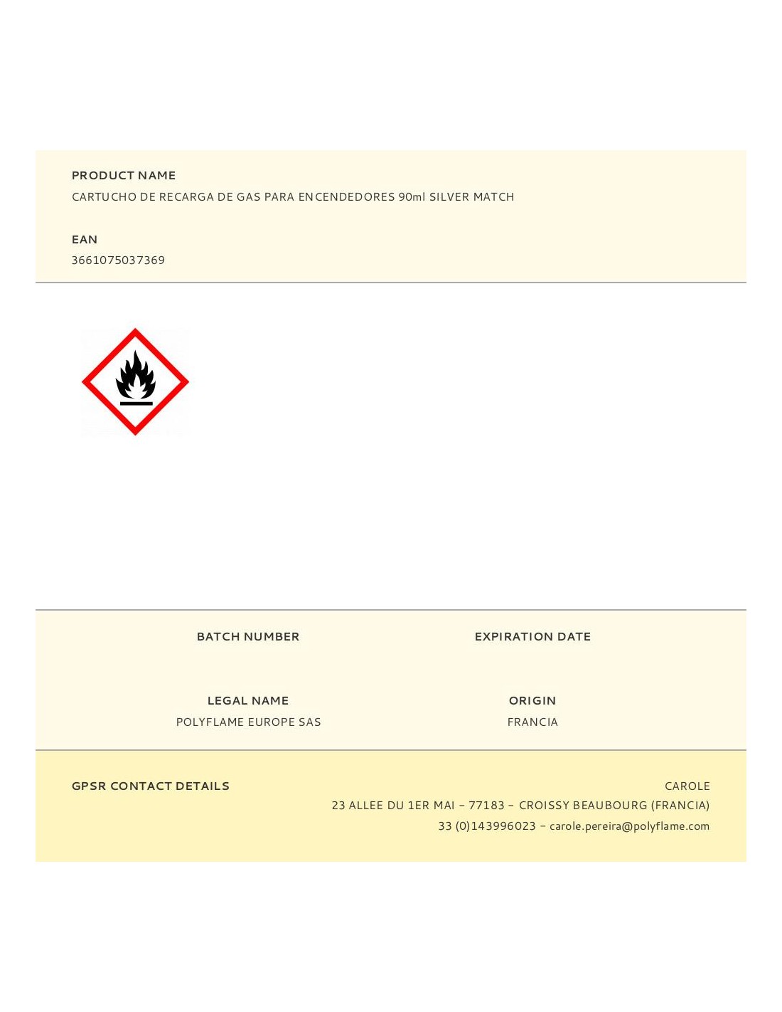 Cartucho de recarga de gas para encendedores 90ml silver match