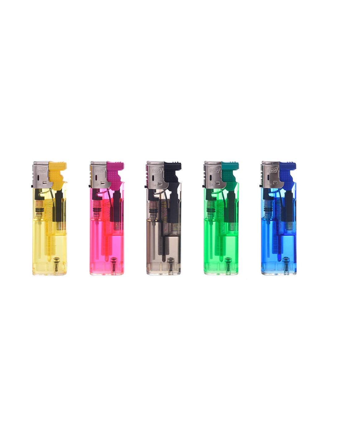 Encendedor modelo transparente llama roja 8x2,5x1cm colores surtidos recargable
