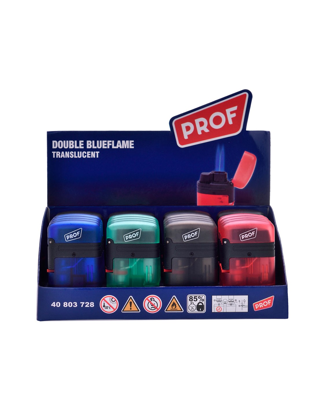 Encendedor storm doble llama transparente colores surtidos. 6,5x4x1,7cm